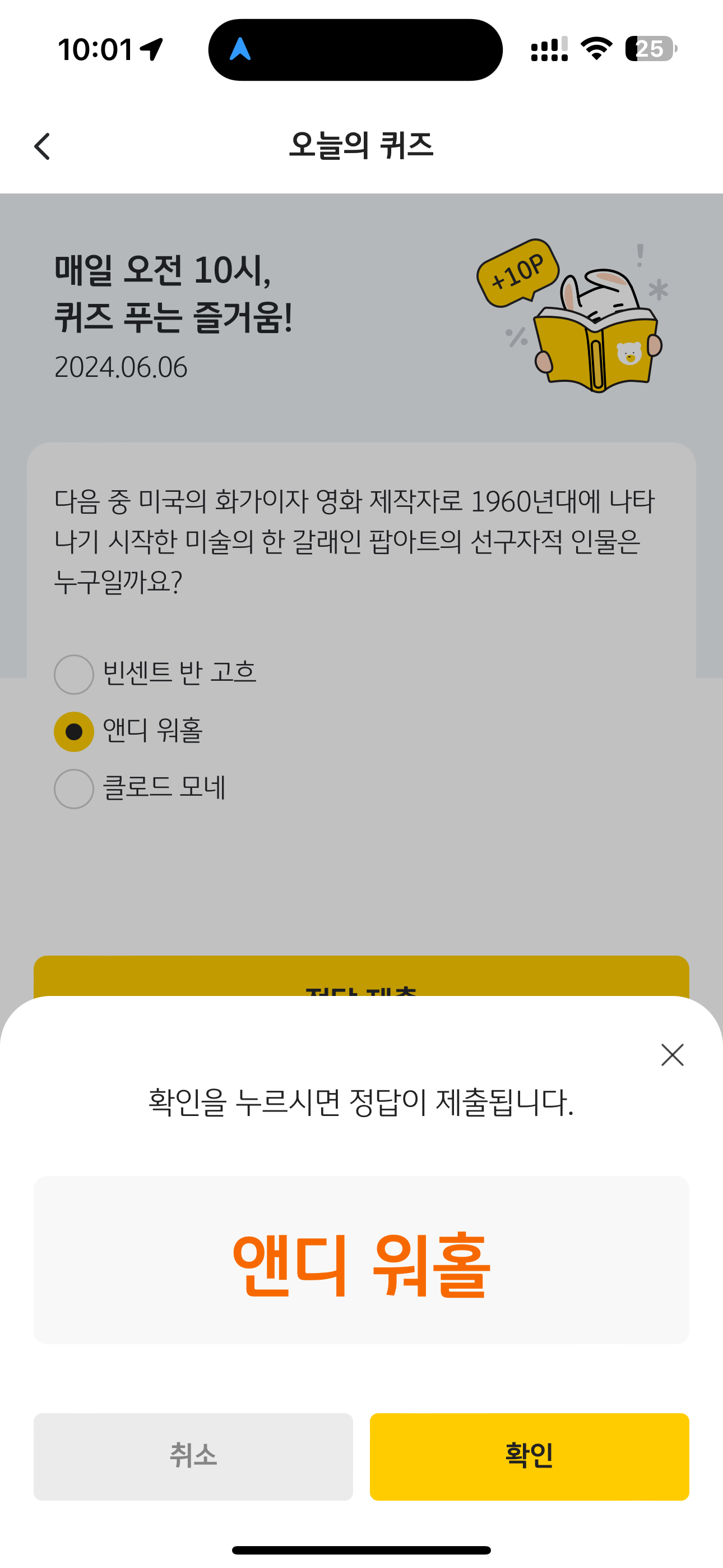 KB Pay 오늘의 퀴즈 6월 6일 정답(다음 중 미국의 화가이자 영화 제작자로 1960년대에 나타나기 시작한 미술의 한 갈래인 팝아트의 선구자적 인물은 누구일까요?)