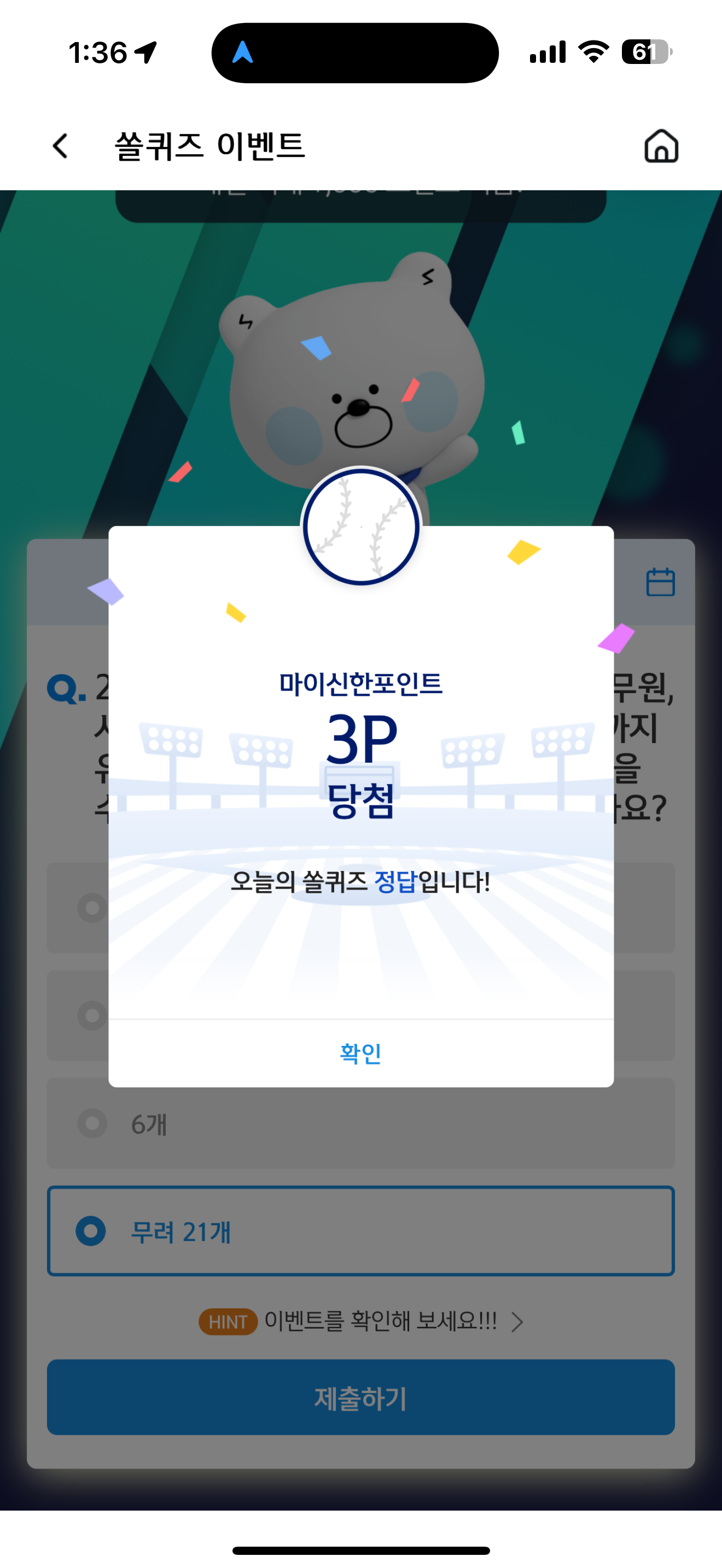 신한 슈퍼SOL 야구/상식 쏠퀴즈 정답은 무려 21개 입니다