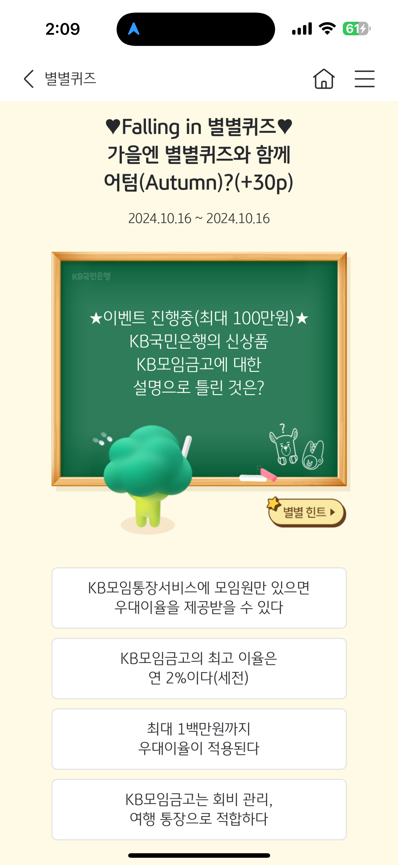 KB스타뱅킹 별별퀴즈 10월 16일 문제입니다