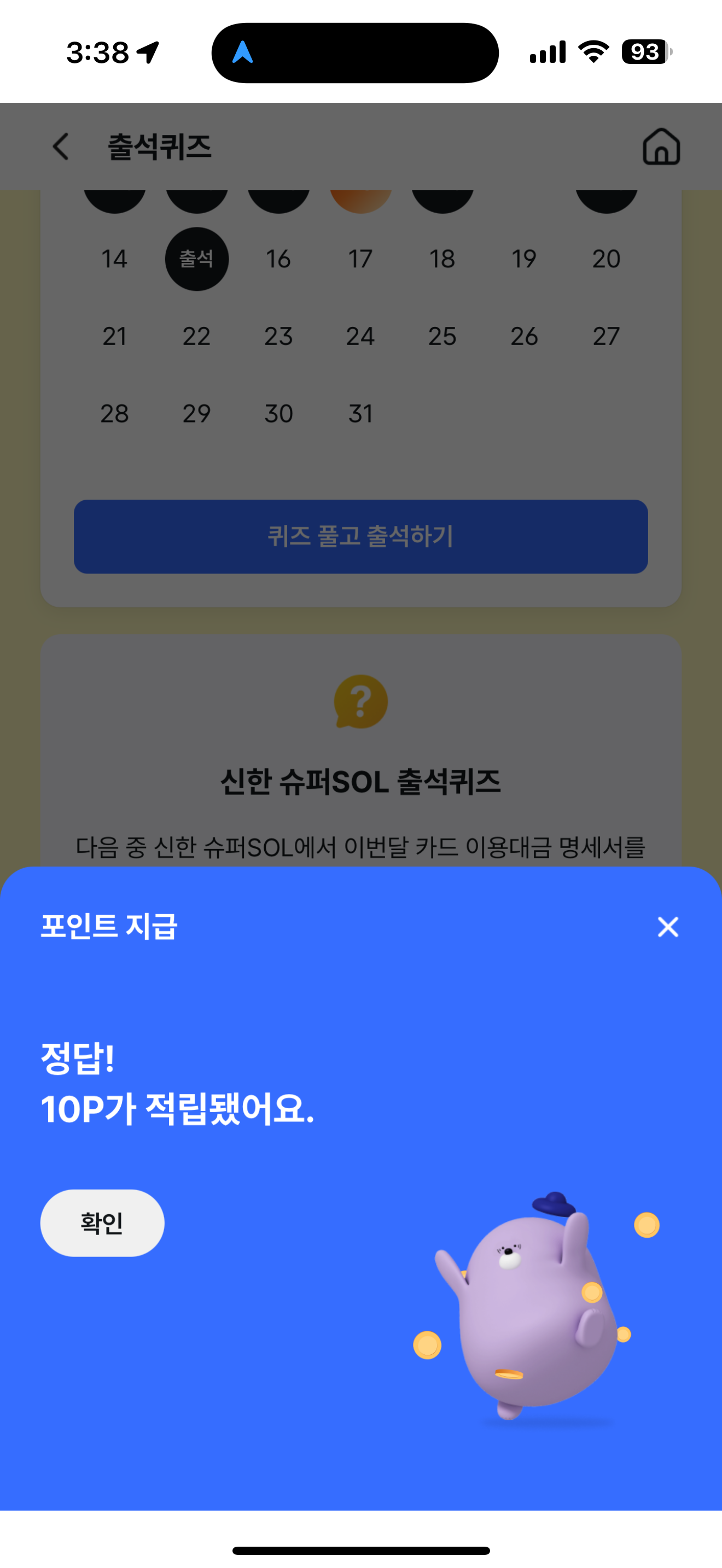 신한 슈퍼SOL 출석퀴즈 10월 16일 문제입니다