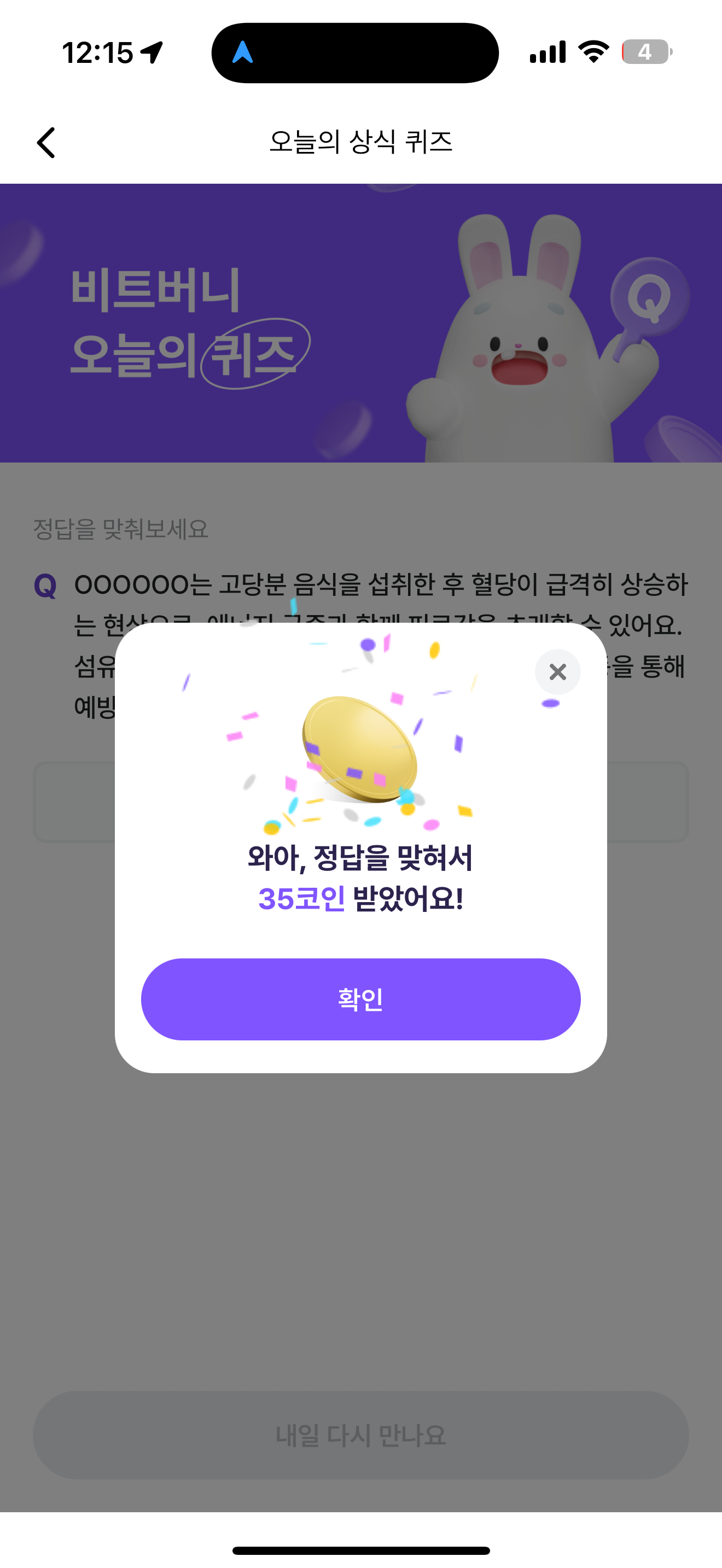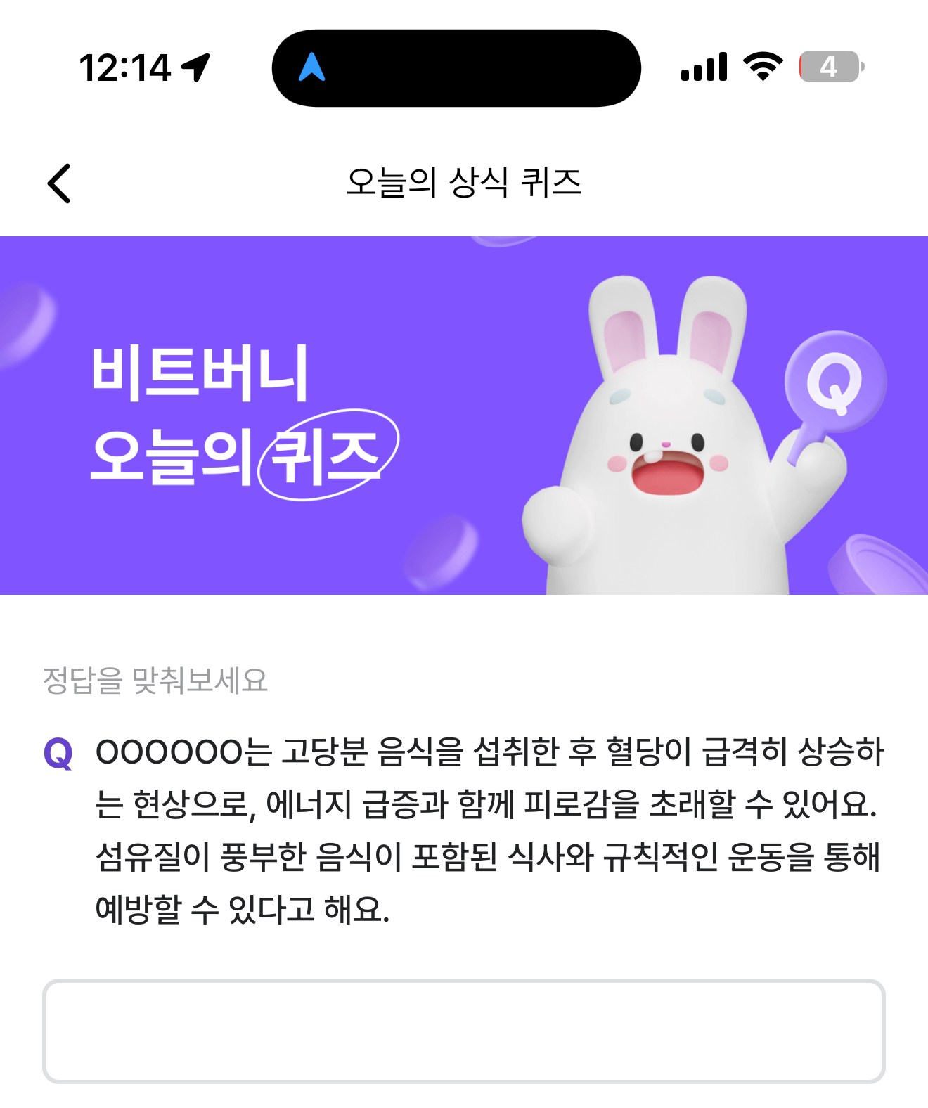 비트버니 오늘의 퀴즈 정답은 혈당스파이크 입니다