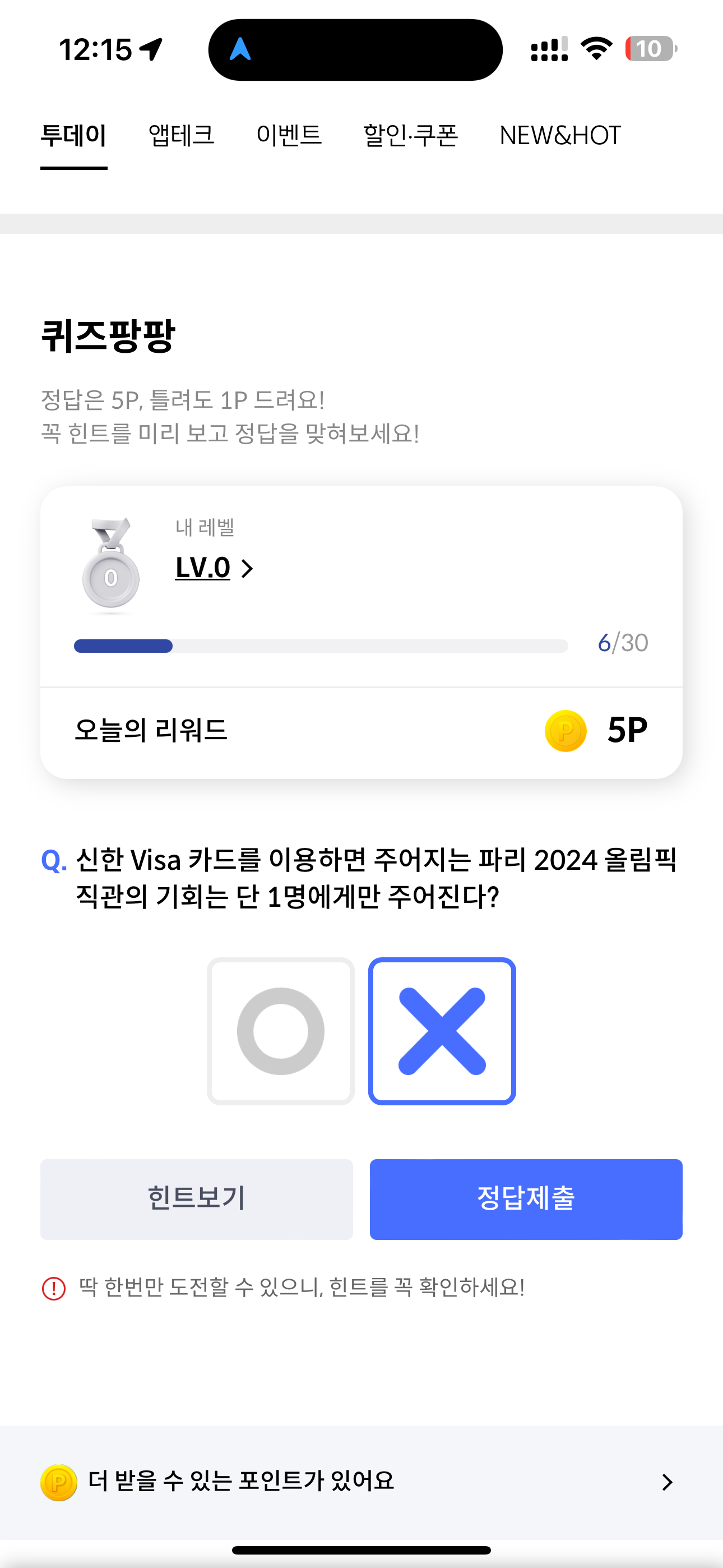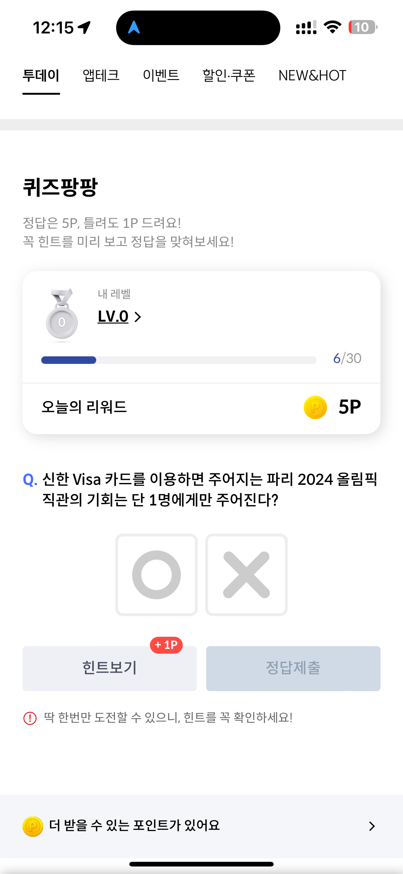 신한 VIsa 카드를 이용하면 주어지는 파리 2024 올림픽 직관의 기회는 단 1명에게만 주어진다? O, X 퀴즈인데요. 이제 곧 2024 파리 올림픽이 열립니다. 신한 Visa는 메인 스폰서로 대대적인 이벤트를 하고 있는데요 과연 몇명이나 파리를 보내주는지 참고해 보시면 좋을 것 같습니다