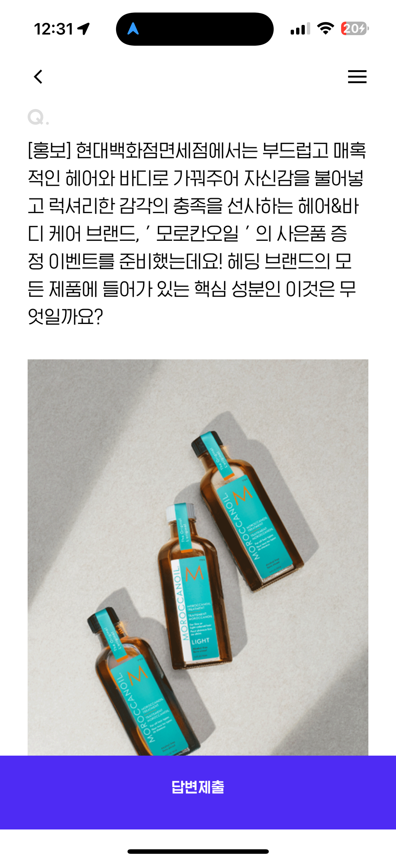 H포인트 퀴즈 정답은 아르간 오일 입니다