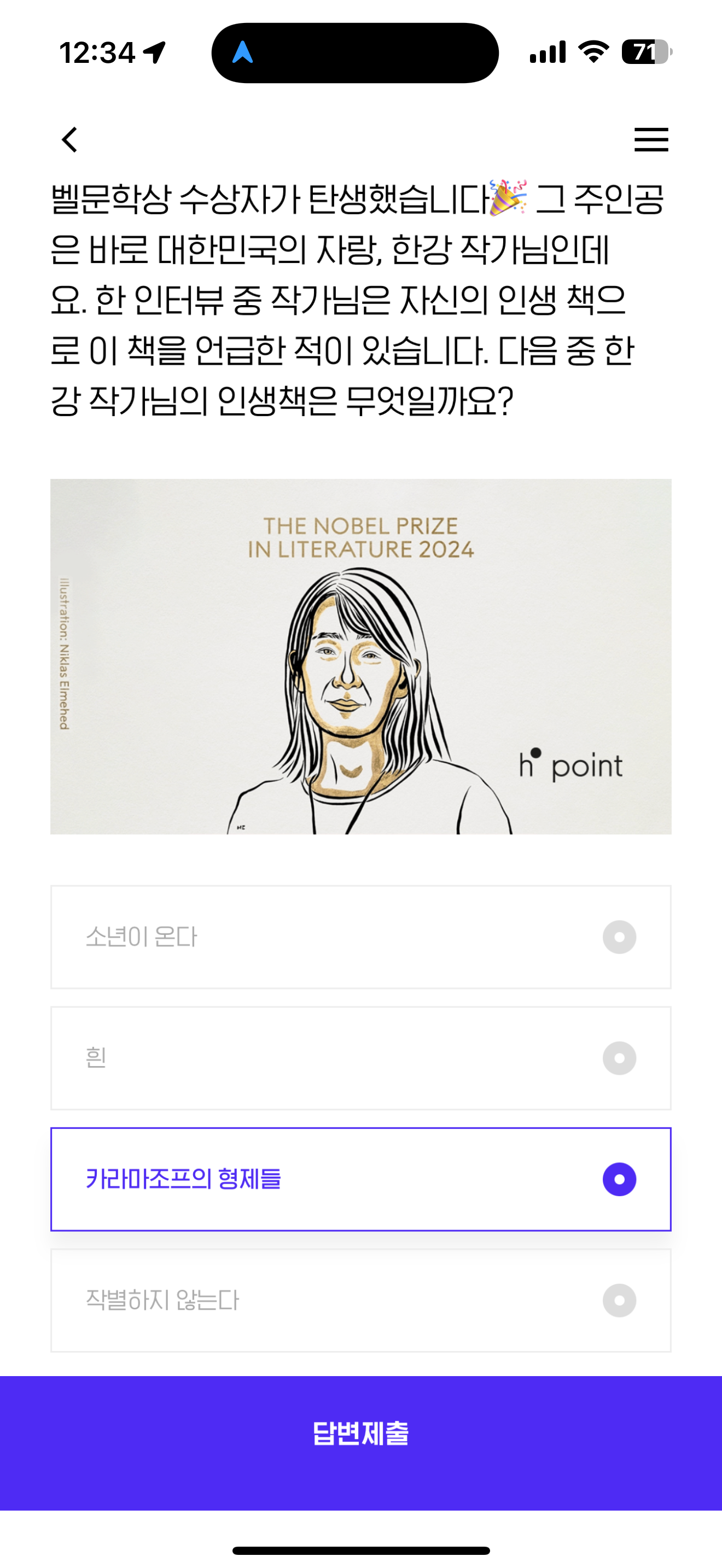 H포인트 퀴즈 정답은 카라마조프의 형제들 입니다
