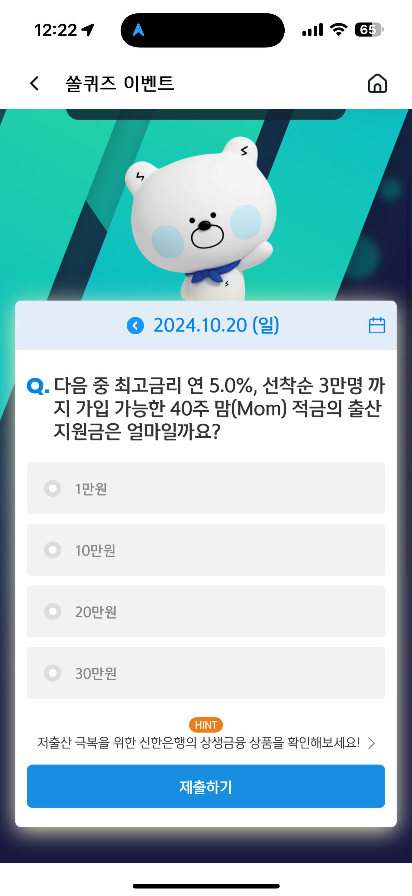 신한 슈퍼SOL 야구/상식 쏠퀴즈 정답은 30만원 입니다