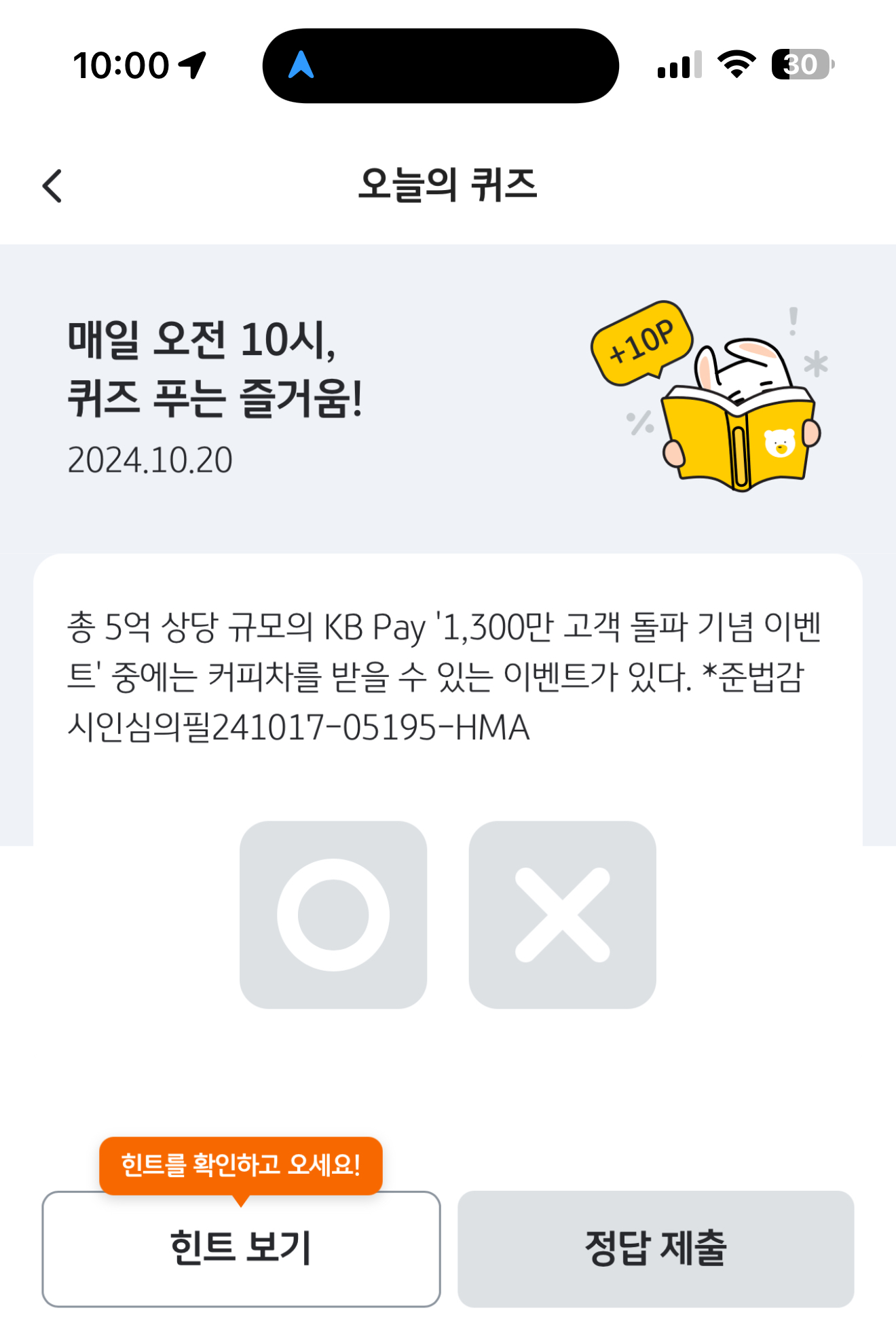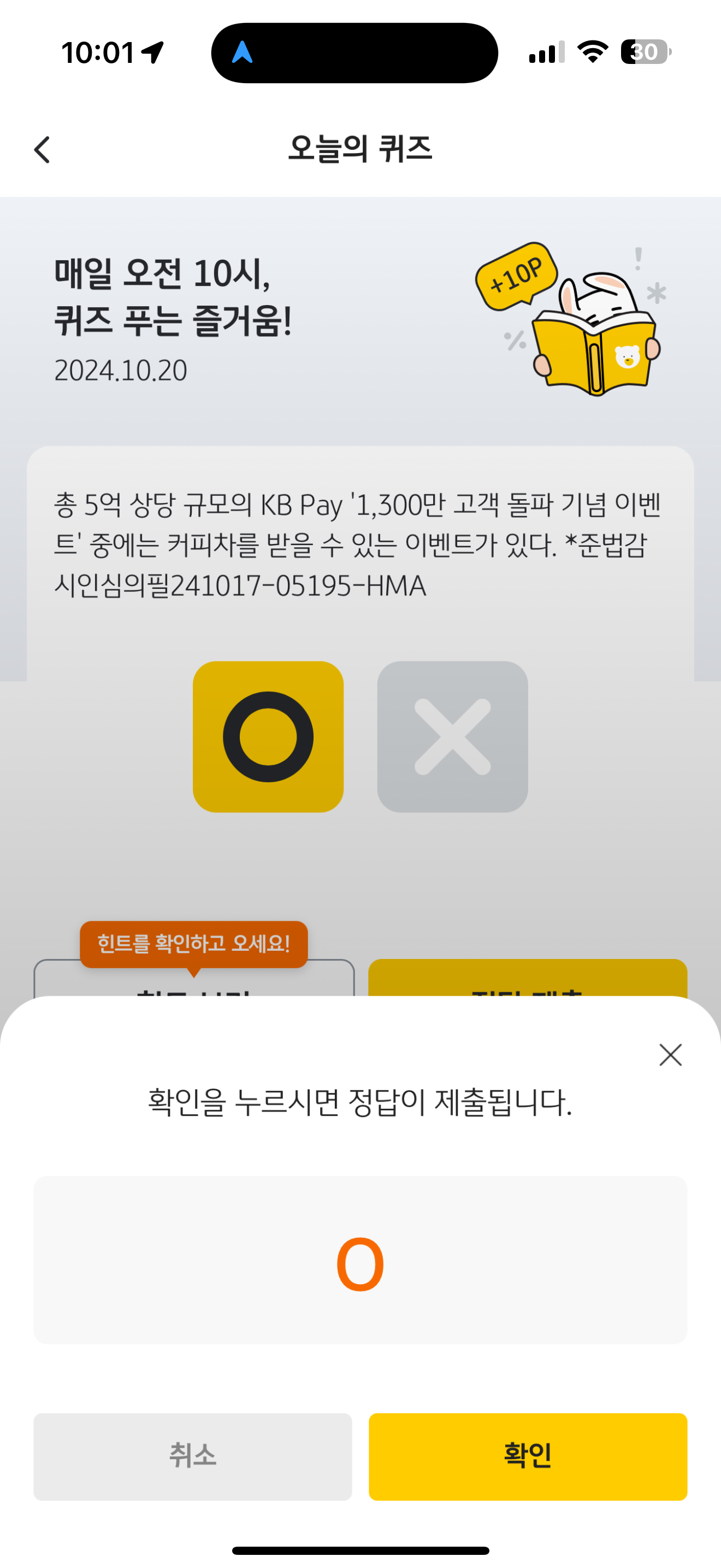 KB Pay 오늘의 퀴즈 정답은 O 입니다