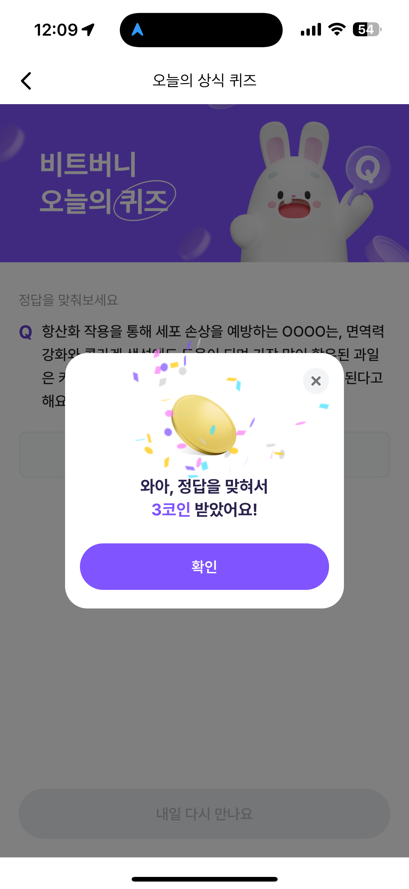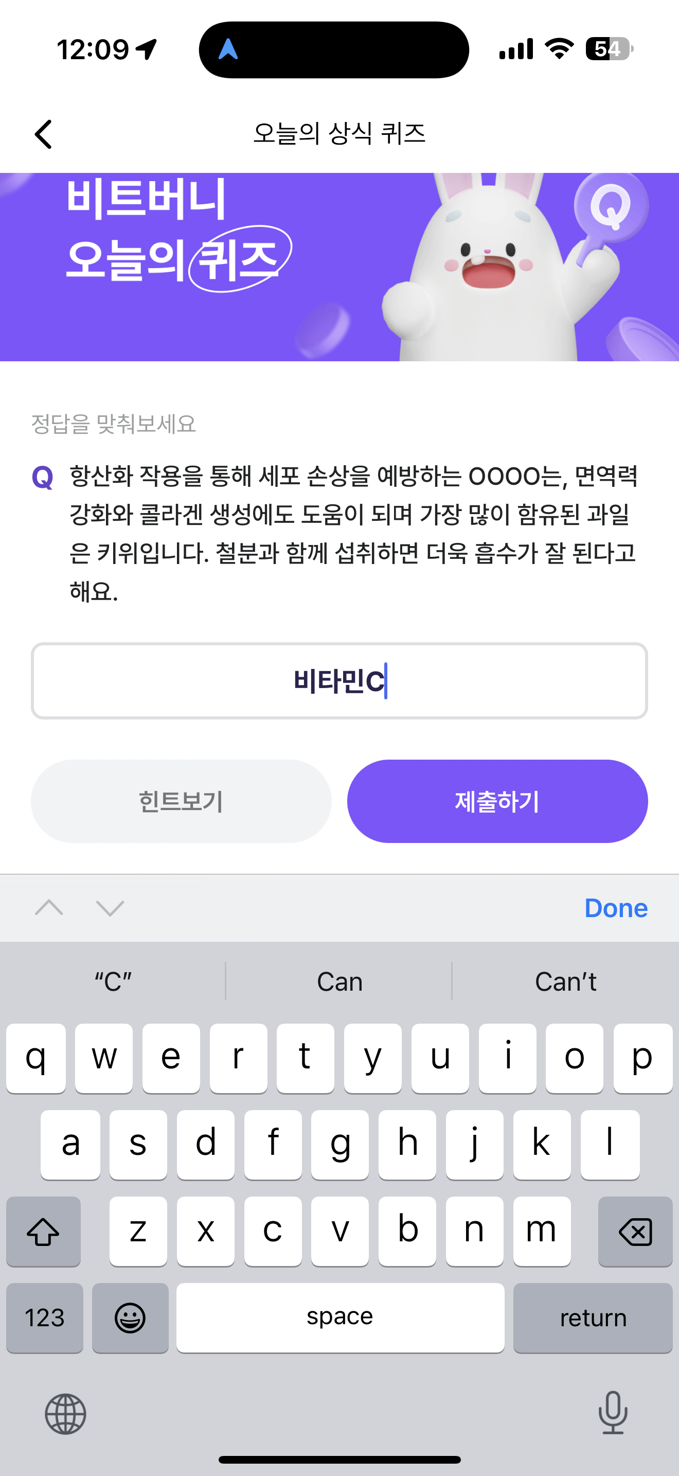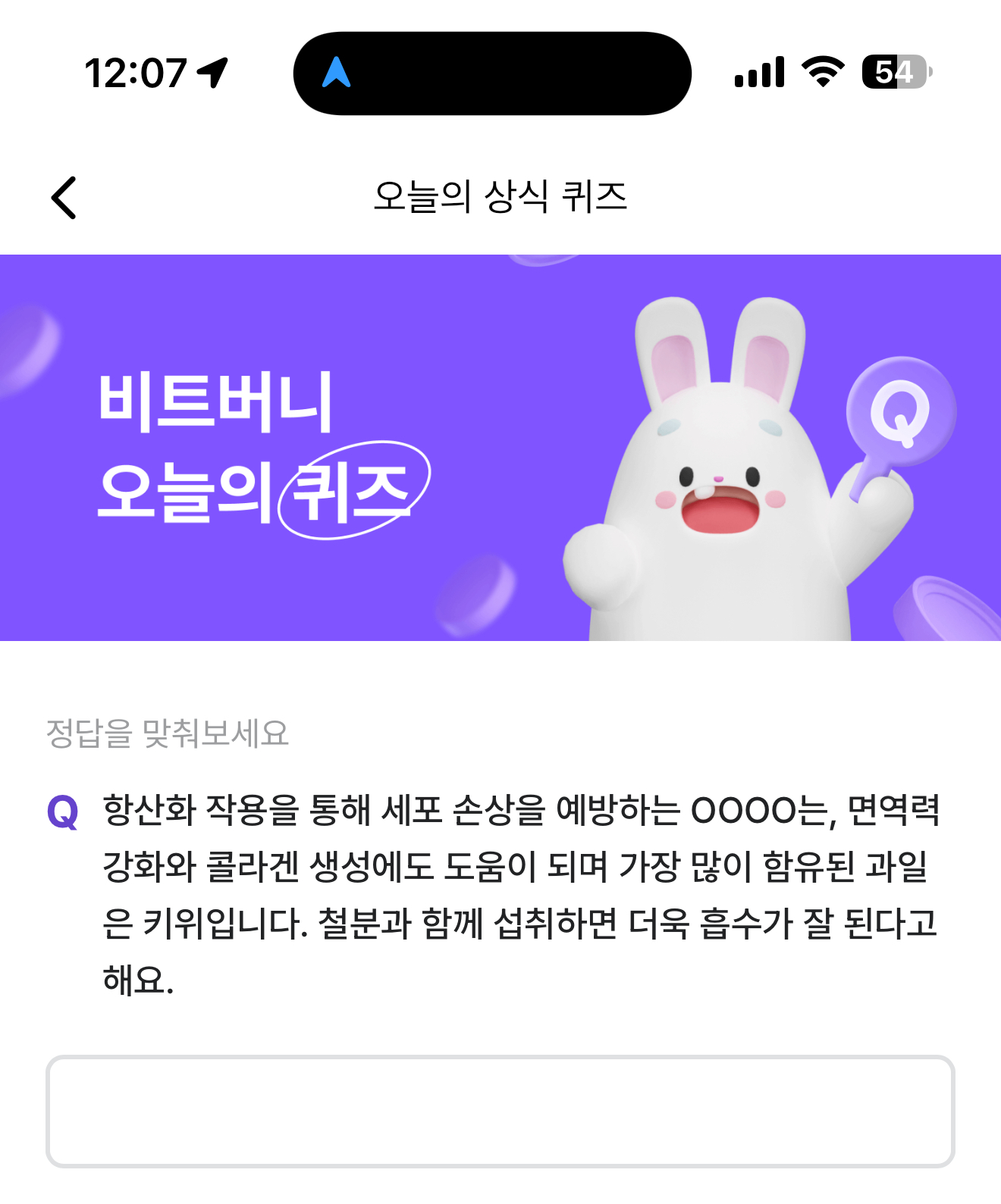 비트버니 오늘의 퀴즈 정답은 비타민C 입니다