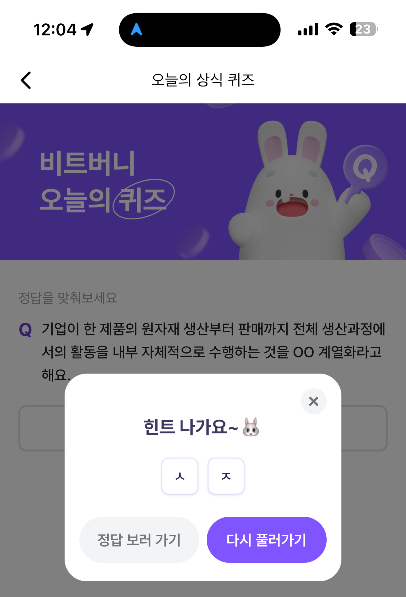 비트버니 오늘의 퀴즈 초성 힌트는 ㅅㅈ 입니다
