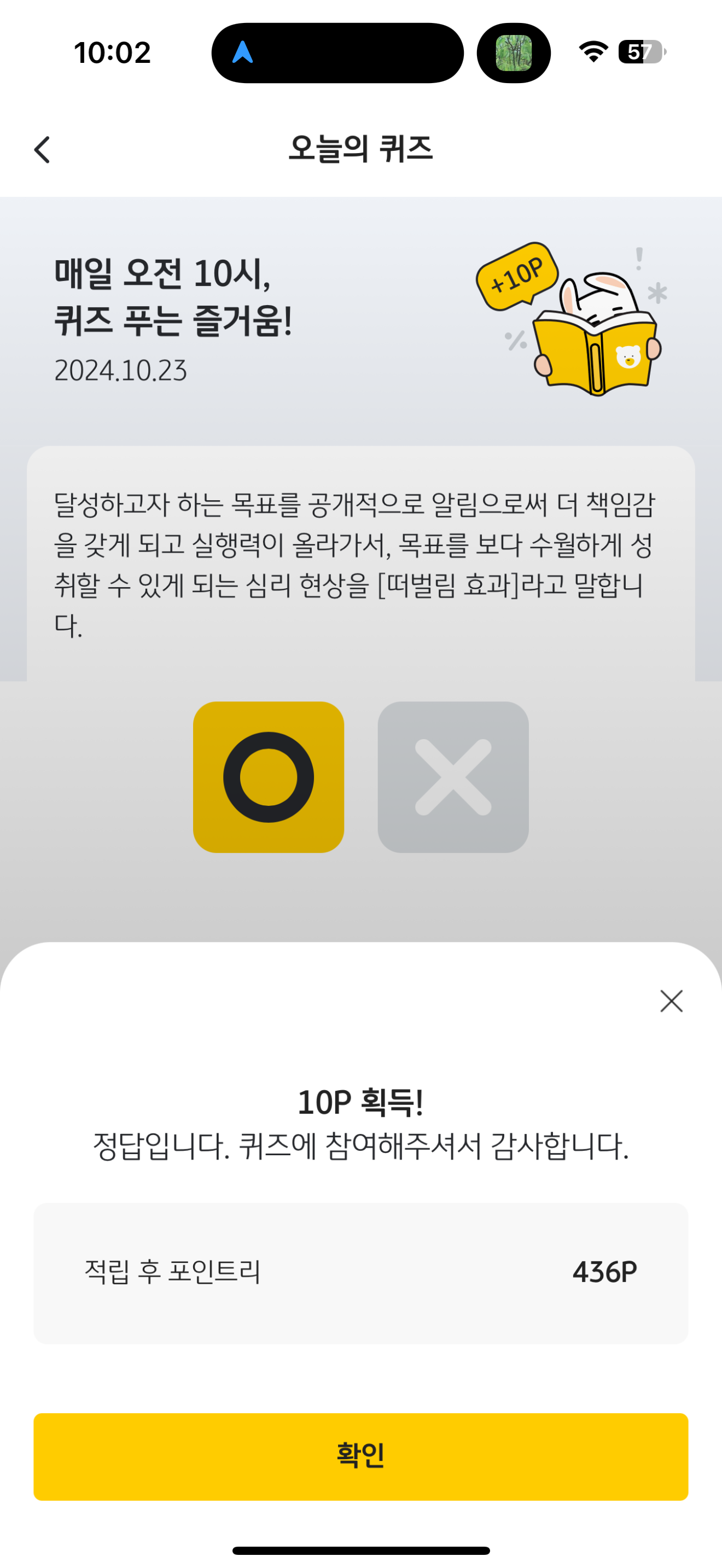 Kb pay 오늘의 퀴즈 정답은 o 입니다