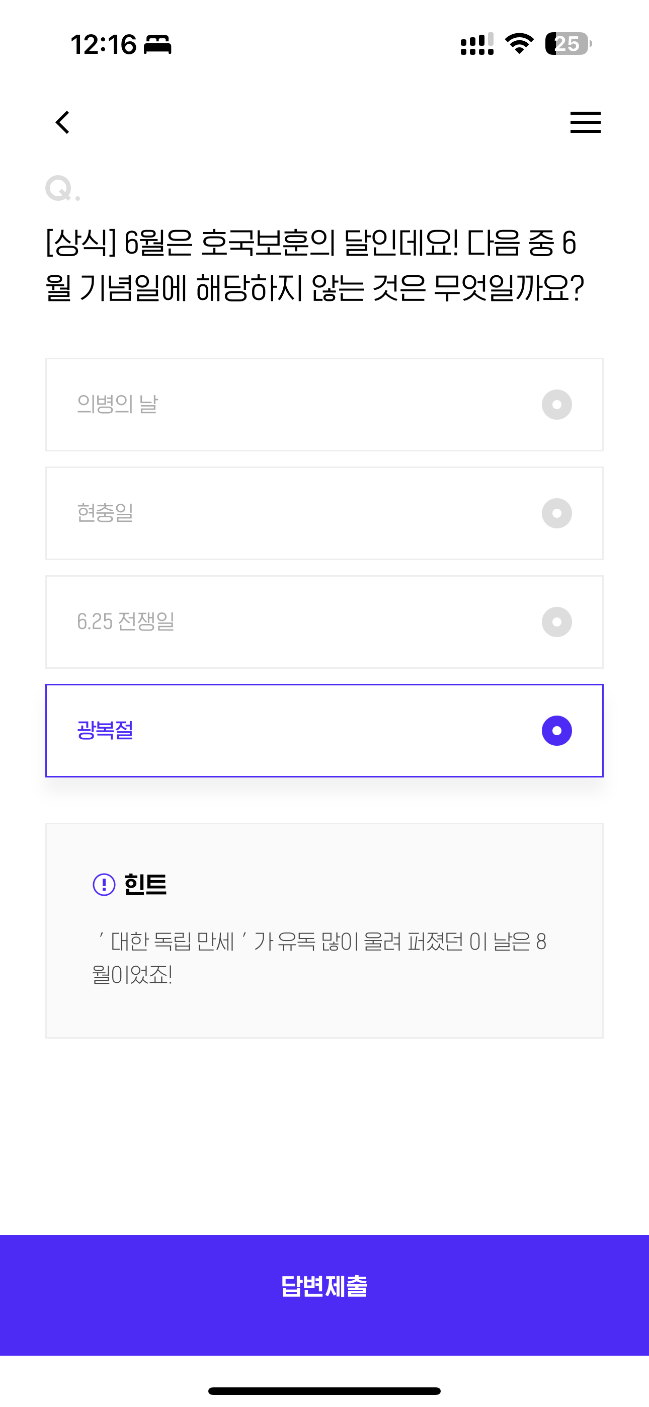 H포인트 퀴즈 정답은 광복절 입니다