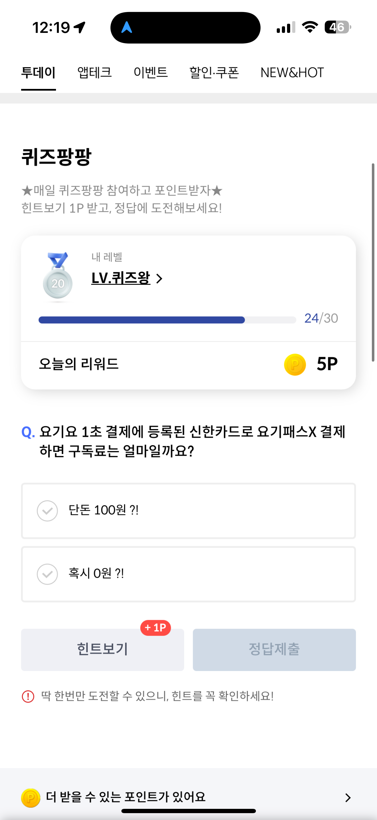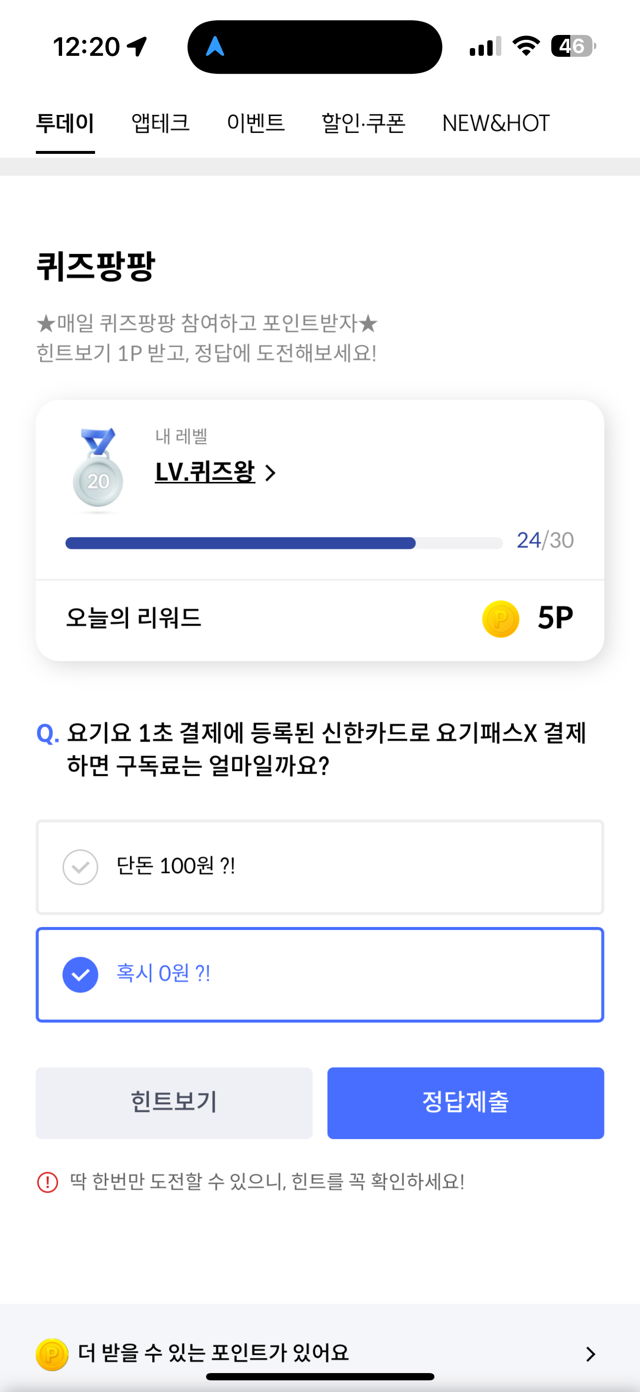 신한카드 퀴즈팡팡 정답은 혹시 0원 ?! 입니다