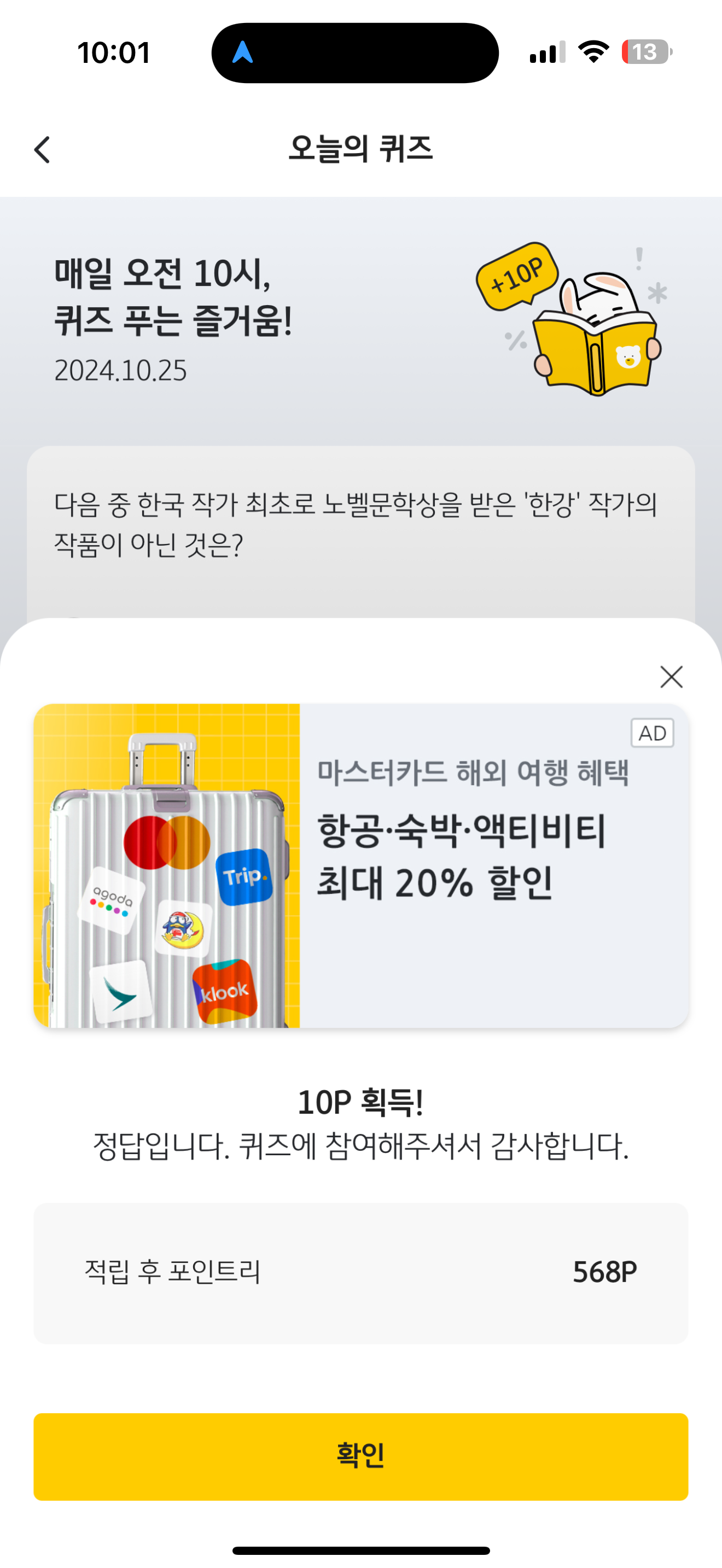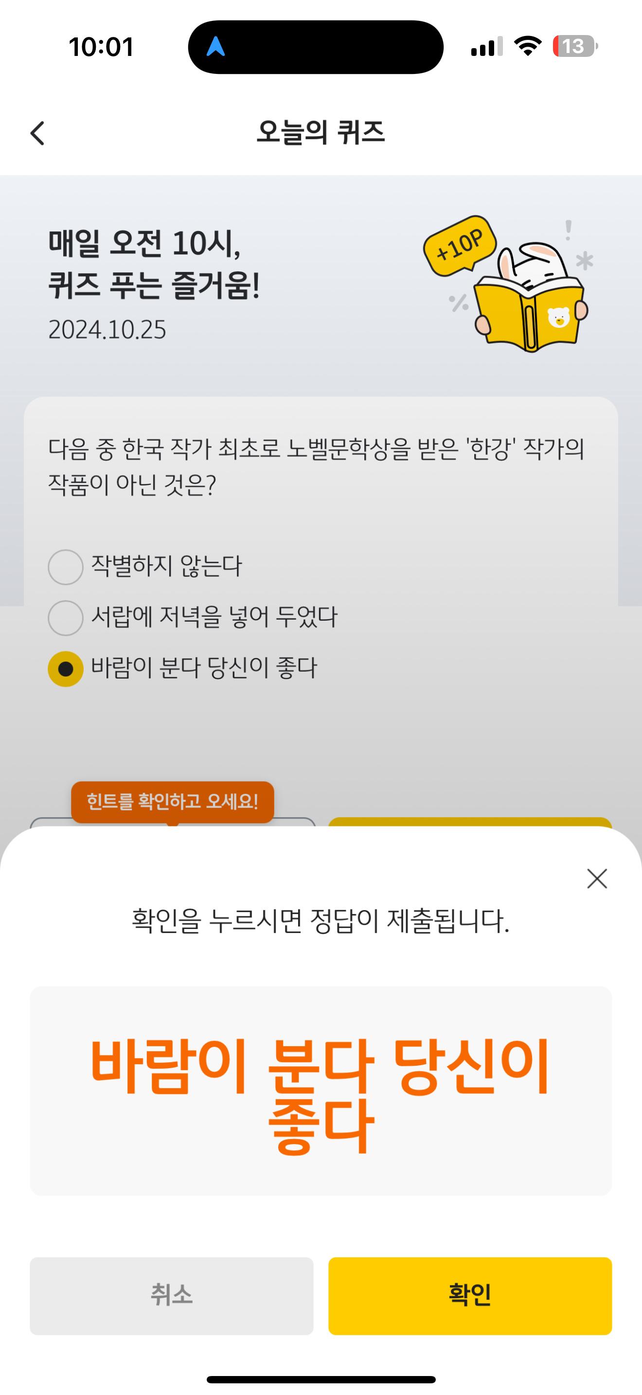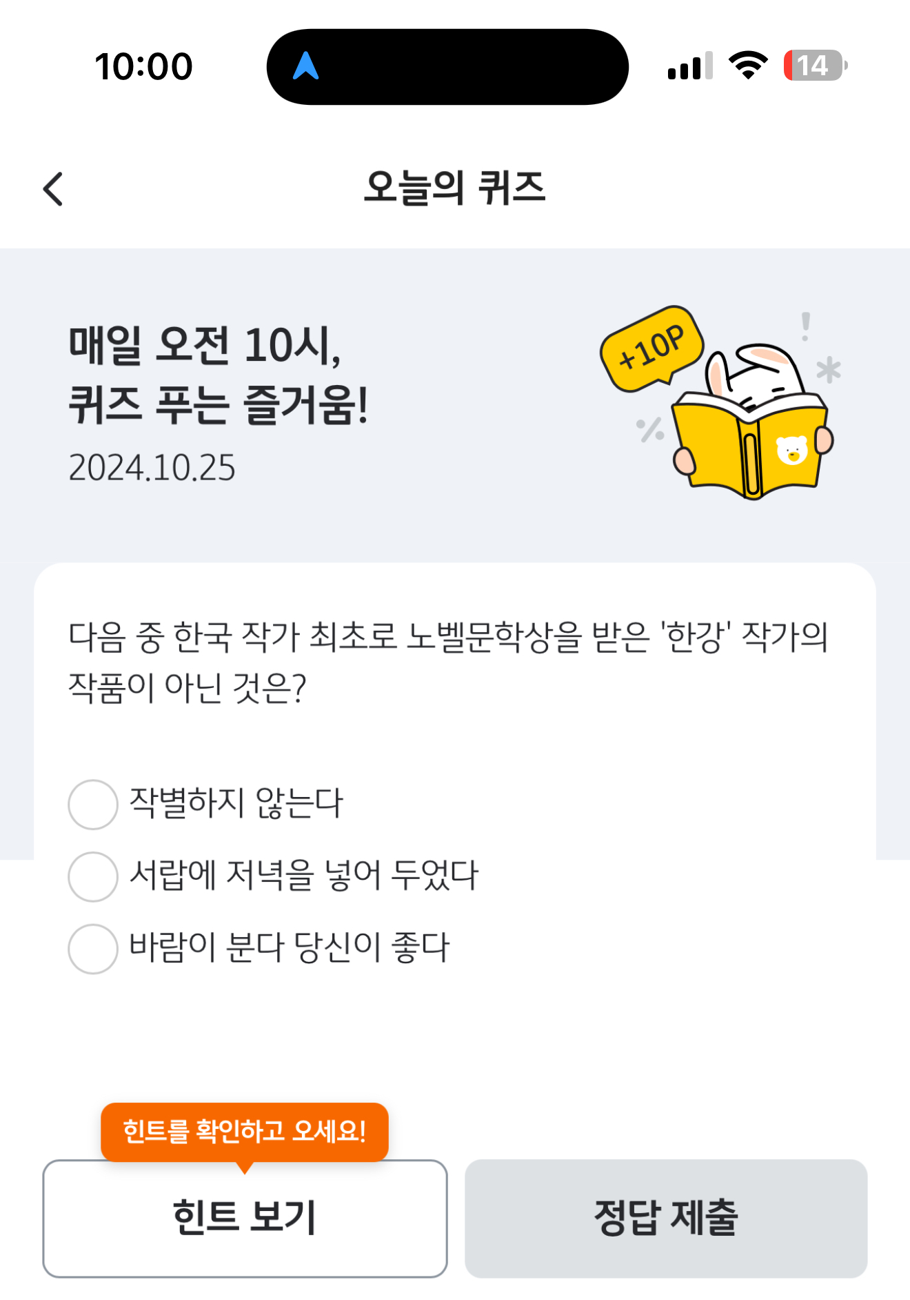 KB Pay 오늘의 퀴즈 10월 25일 문제입니다