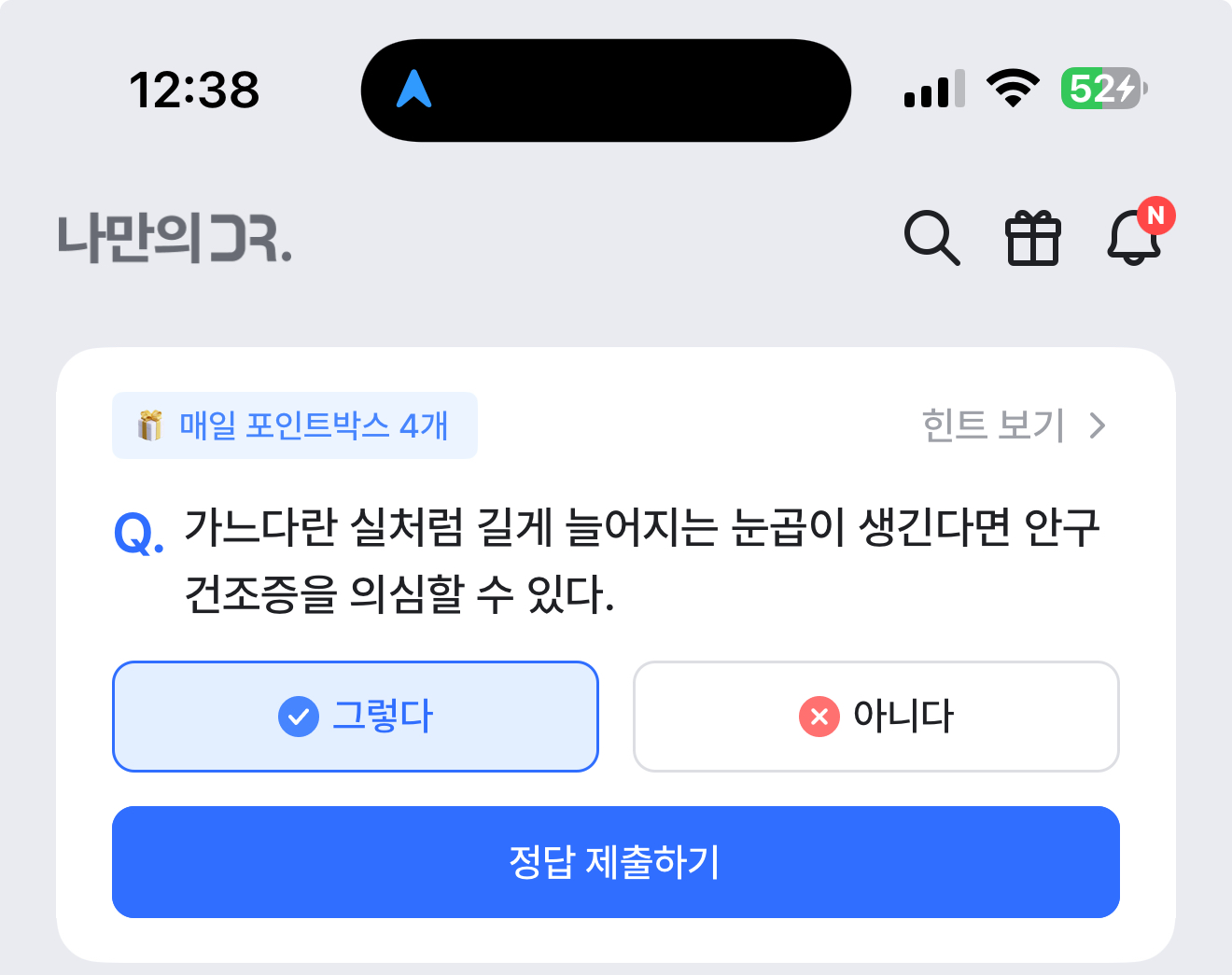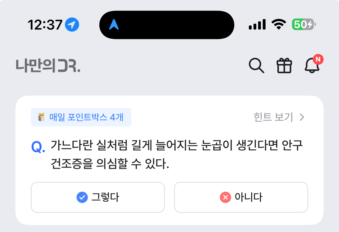 나만의 닥터 퀴즈 10월 27일 정답(가느다란 실처럼 길게 늘어지는 눈곱이 생긴다면 안구 건조증을 의심할 수 있다)