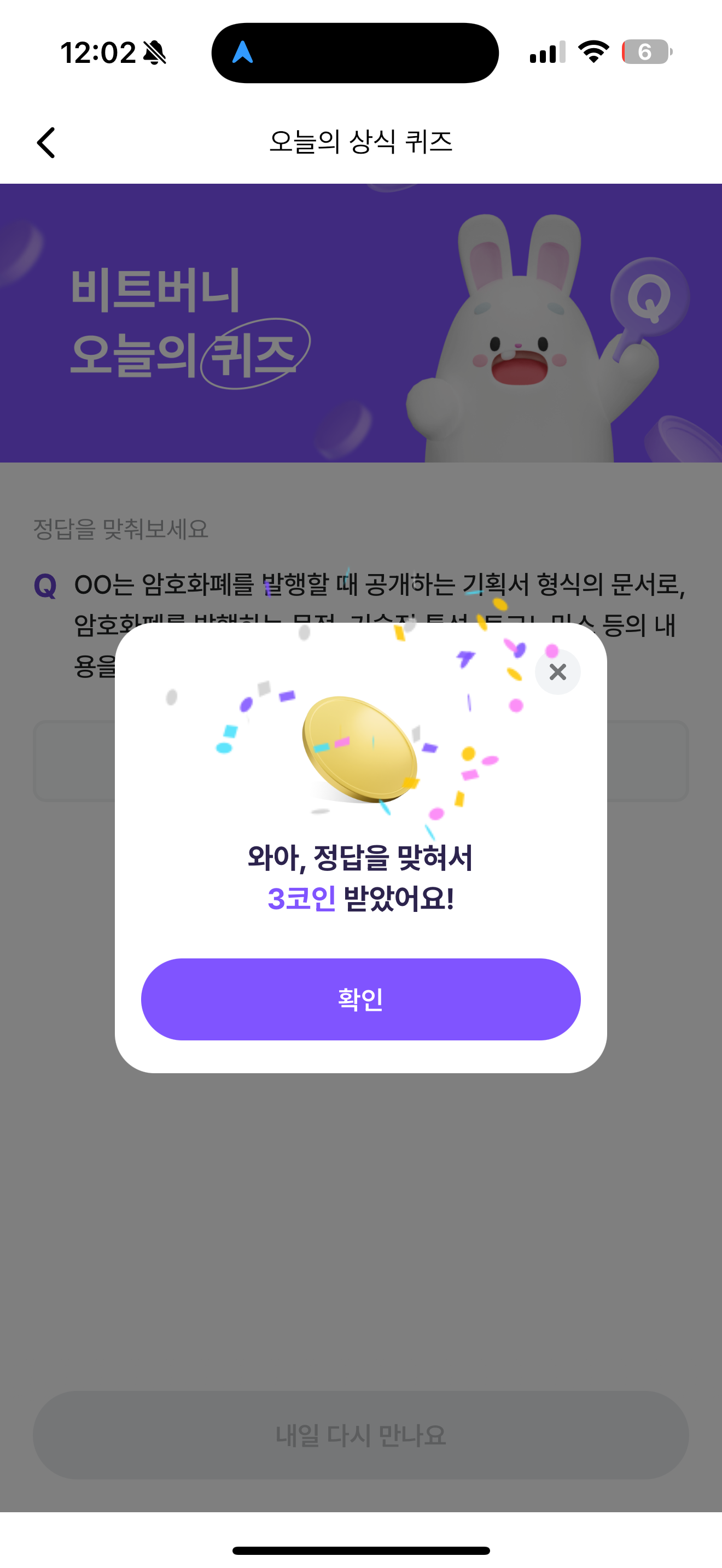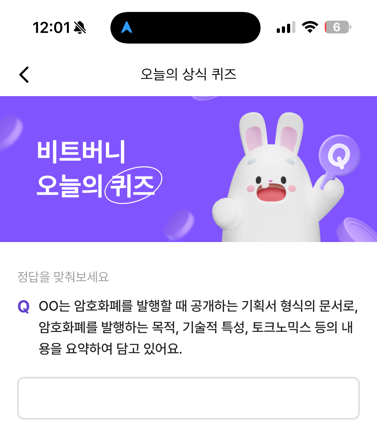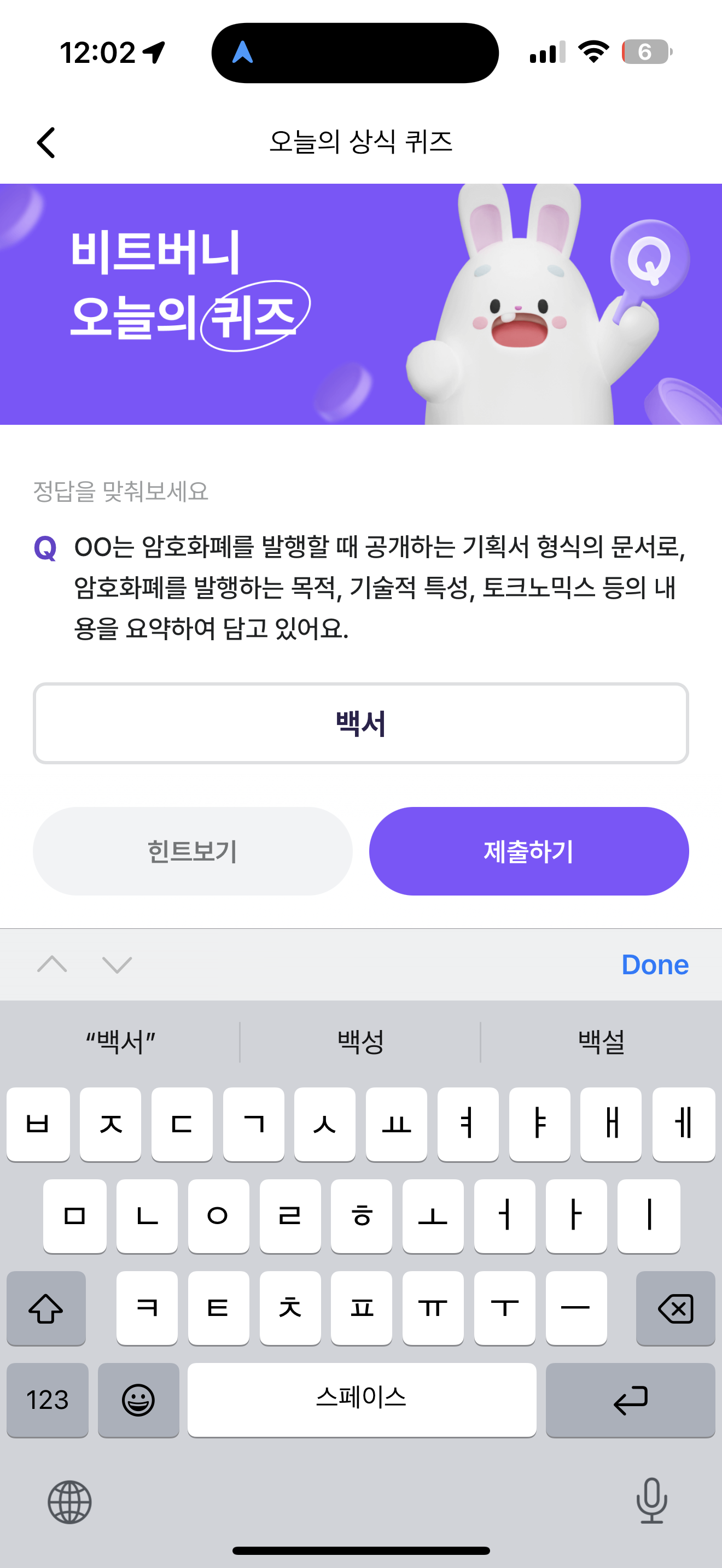 비트버니 오늘의 퀴즈 정답은 백서 입니다
