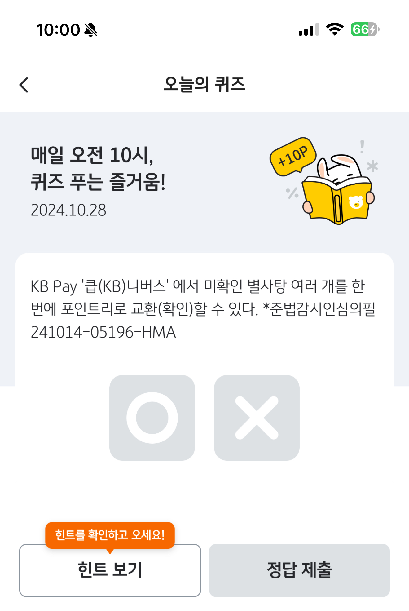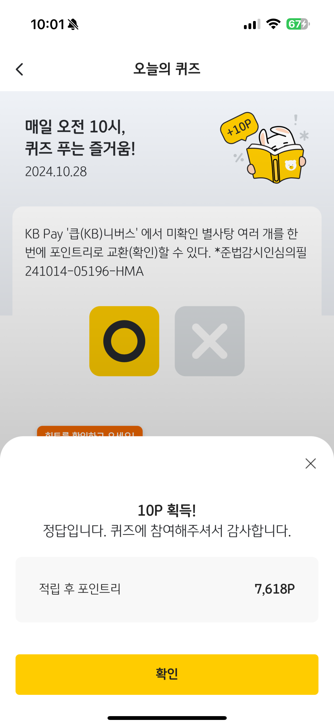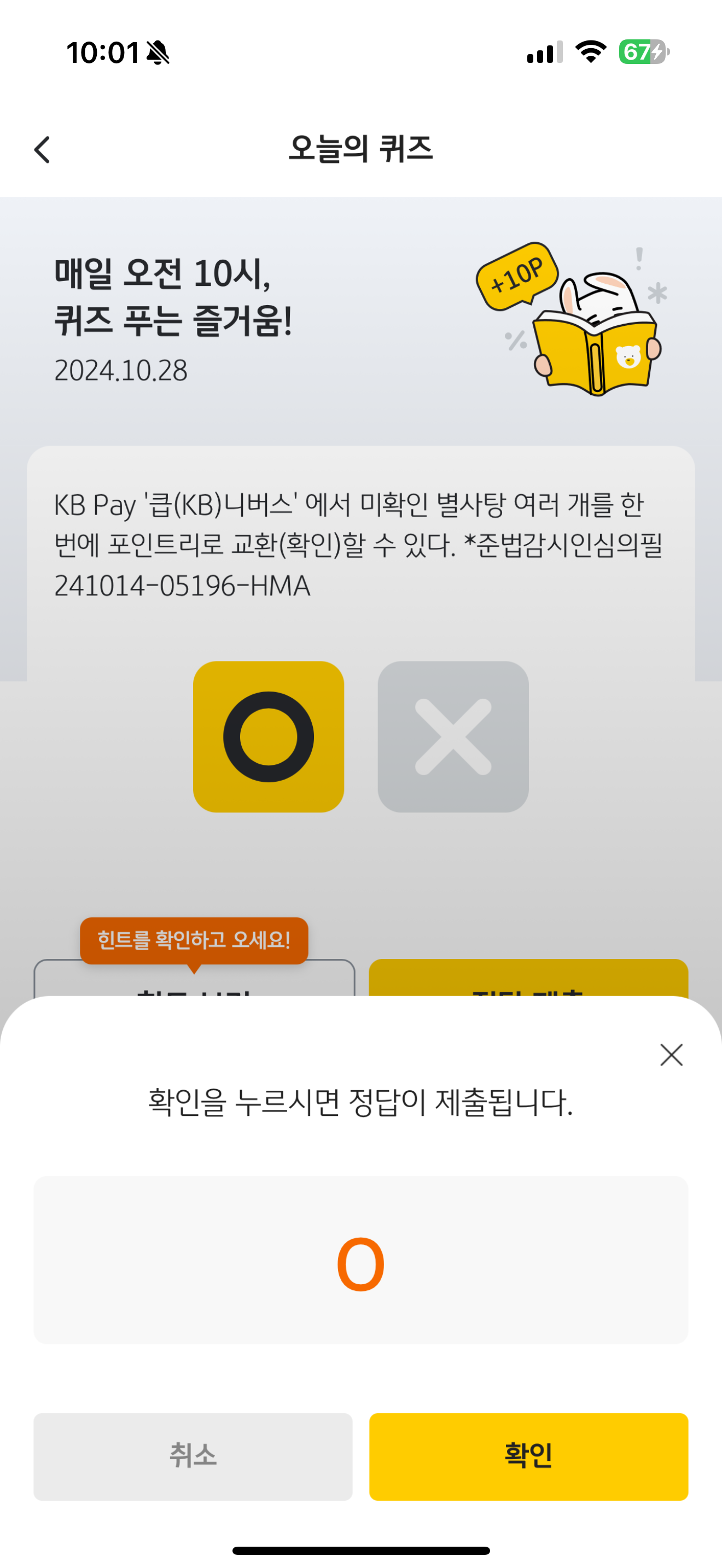 KB Pay 오늘의 퀴즈 정답은 O 입니다