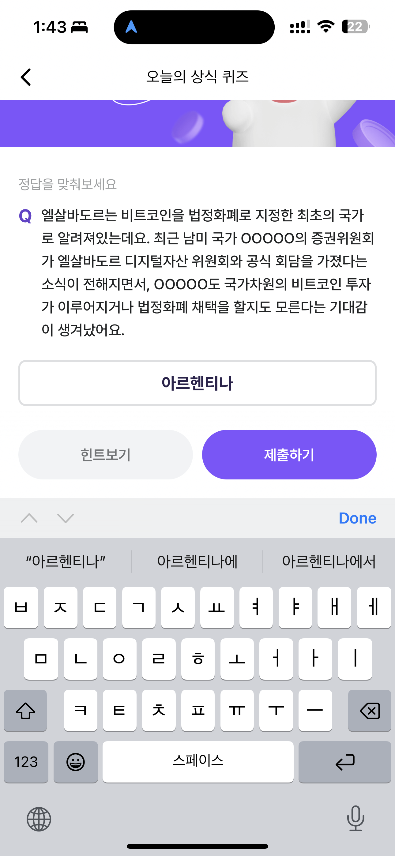 비트버니 오늘의 퀴즈 정답은 아르헨티나 입니다