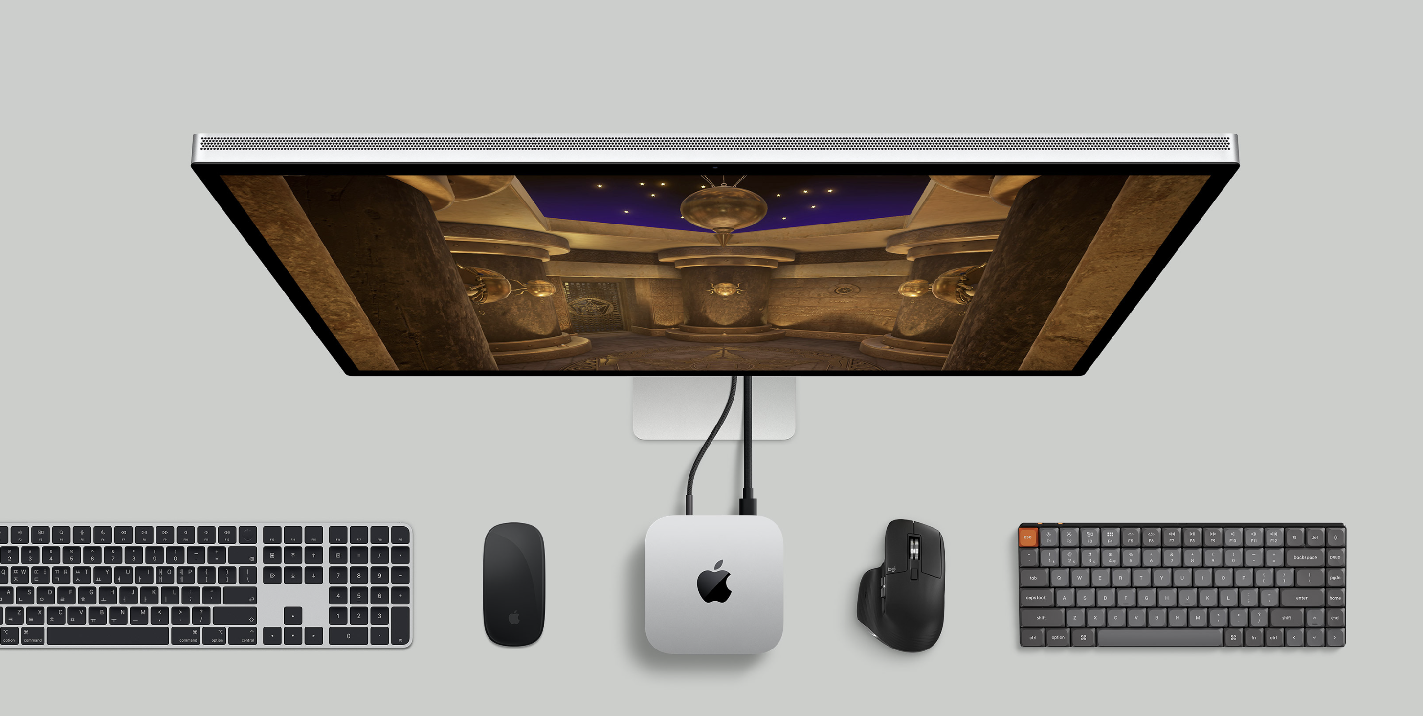 애플 M4 Pro 칩은 최신의 썬더볼트5를 지원합니다. 맥 미니에서 최대 120Gb/s의 데이터 전송 속도와 썬더볼트4 대비 2배 더 많은 처리량을 경험할 수 있습니다.
