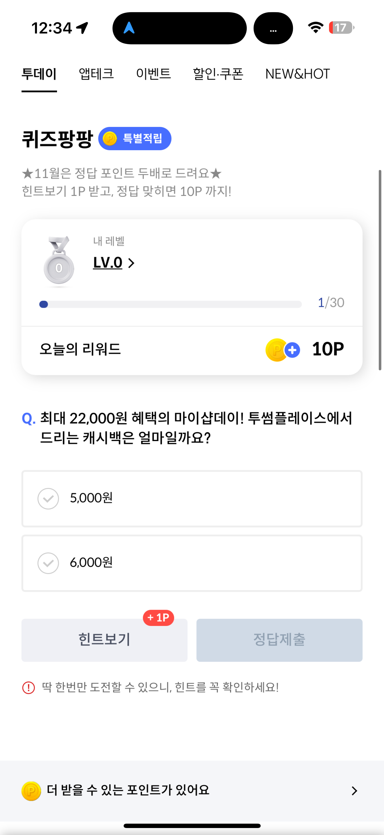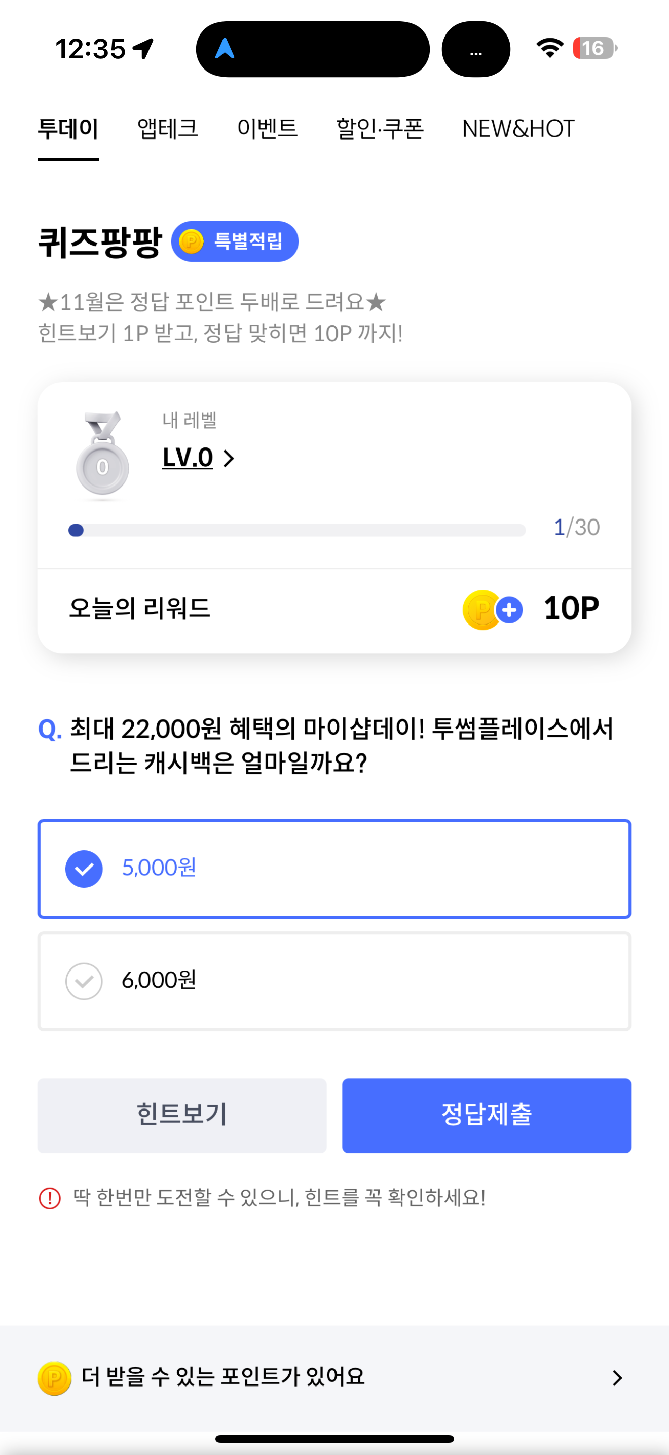 신한카드 퀴즈팡팡 정답은 5,000원 입니다.