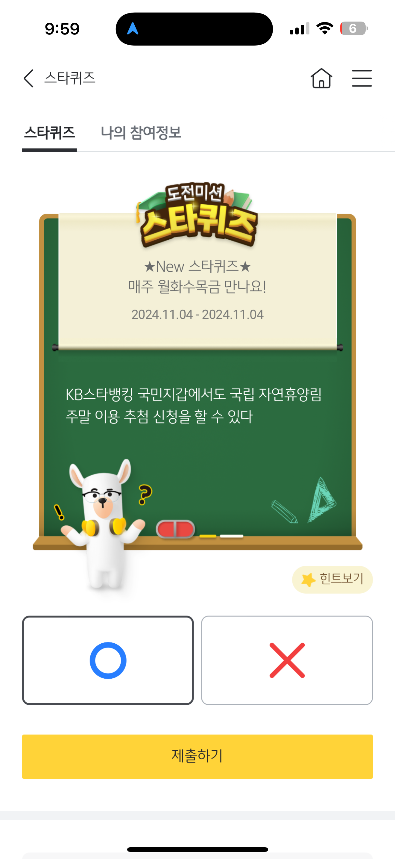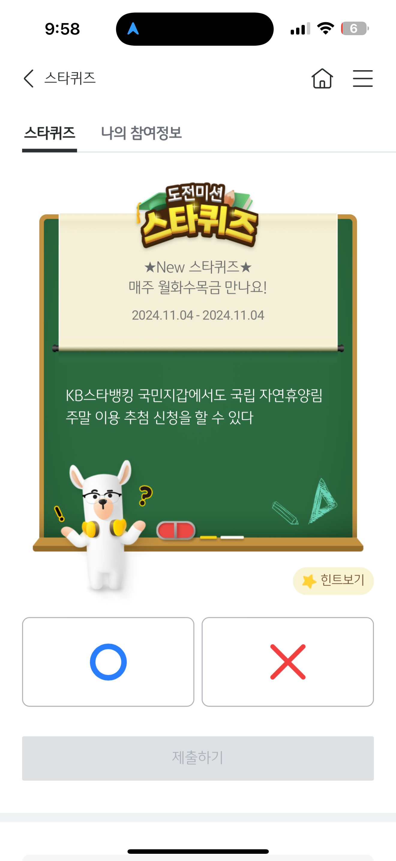 KB스타뱅킹 도전미션 스타퀴즈 정답은 O 입니다
