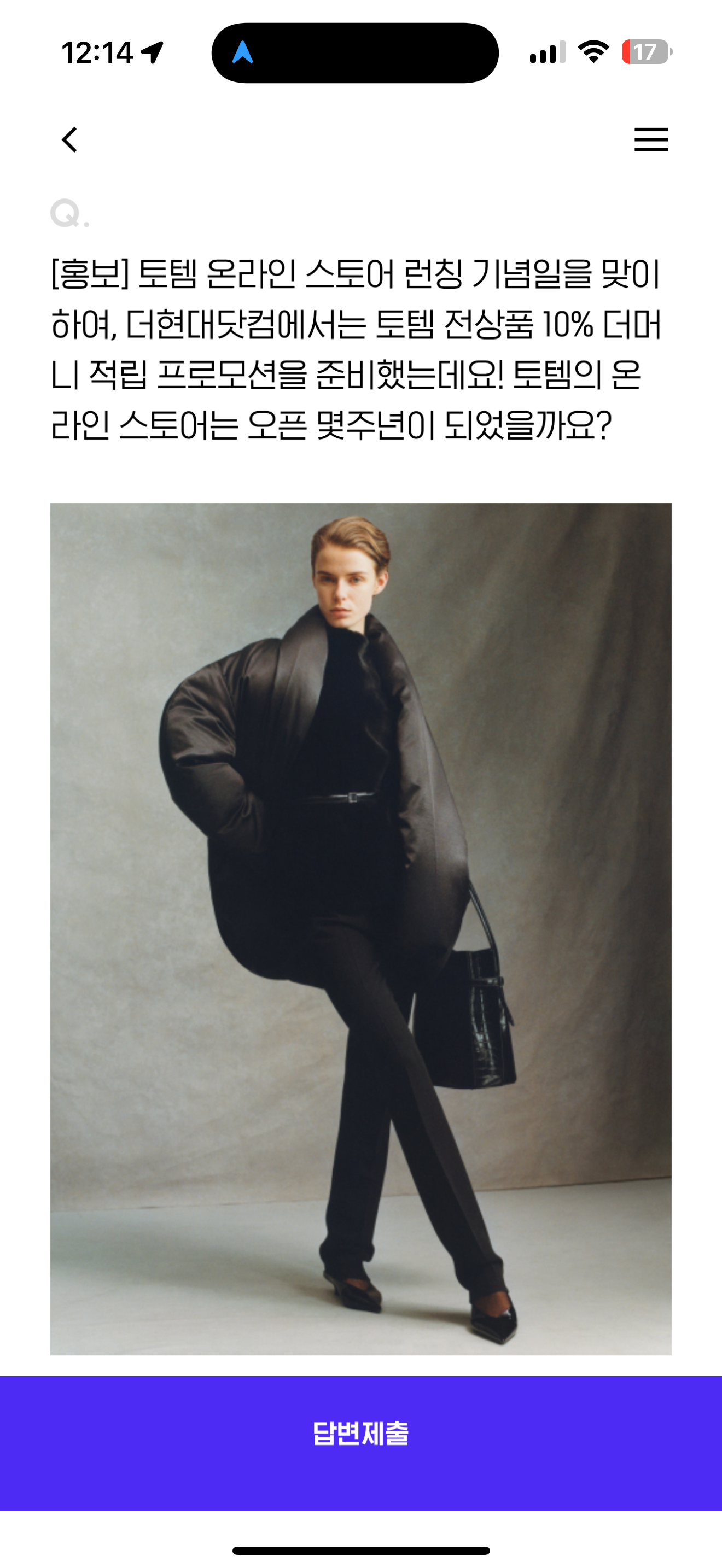토템 온라인 스토어 런칭 기념일을 맞이하여, 더현대닷컴에서는 토템 전상품 10% 더머니 적립 프로모션을 준비했는데요! 토템의 온라인 스토어는 오픈 몇주년이 되었을까요? 보기는 1. 1주년 2. 2주년 3. 3주년 4. 4주년 입니다. 전상품 10% 적립을 받으니 참고해 두세요