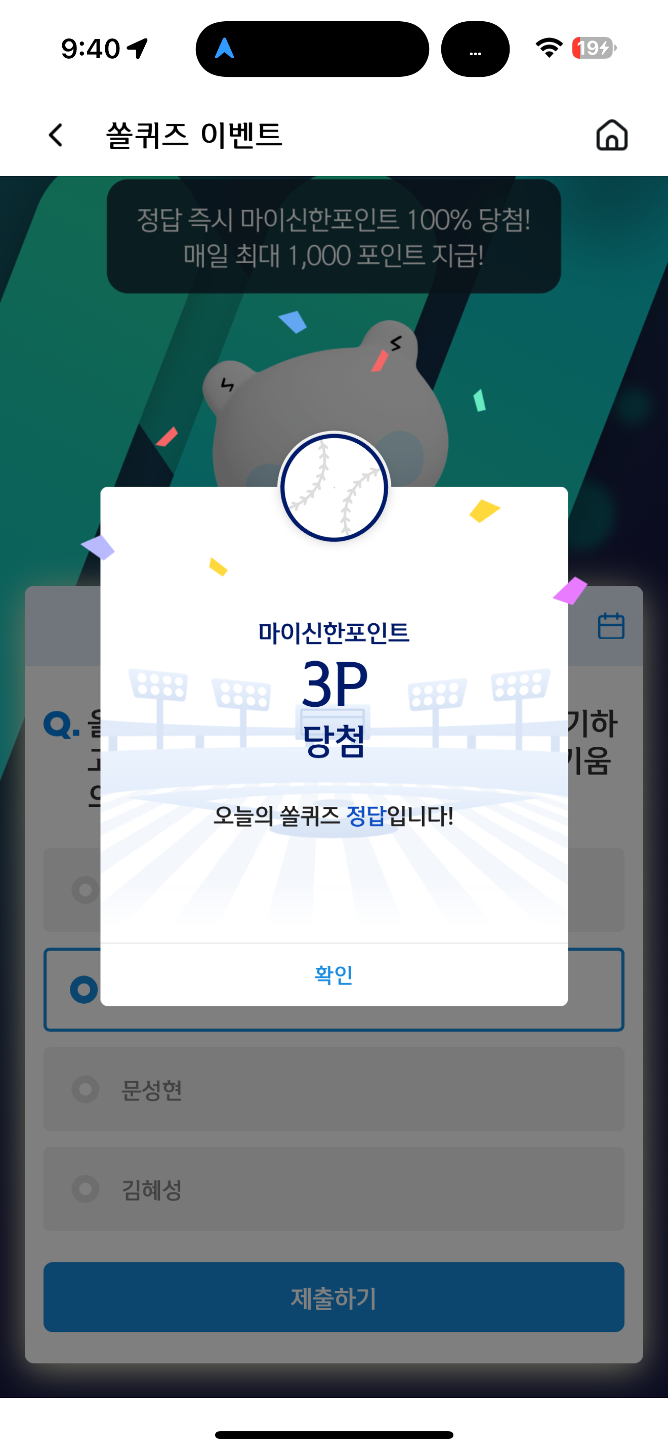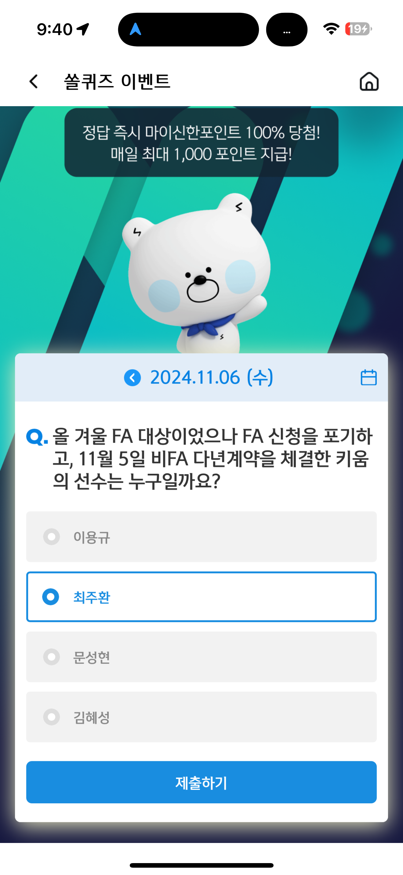 신한 슈퍼SOL 야구/상식 쏠퀴즈 정답은 최주환 입니다