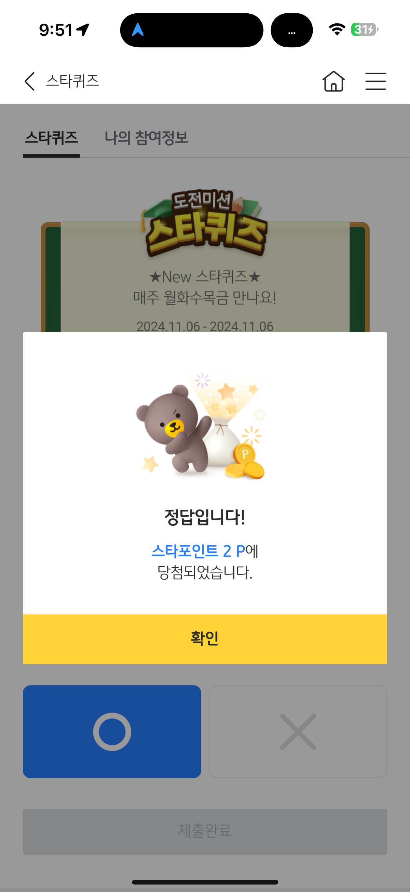 KB스타뱅킹 스타퀴즈 정답은 O 입니다