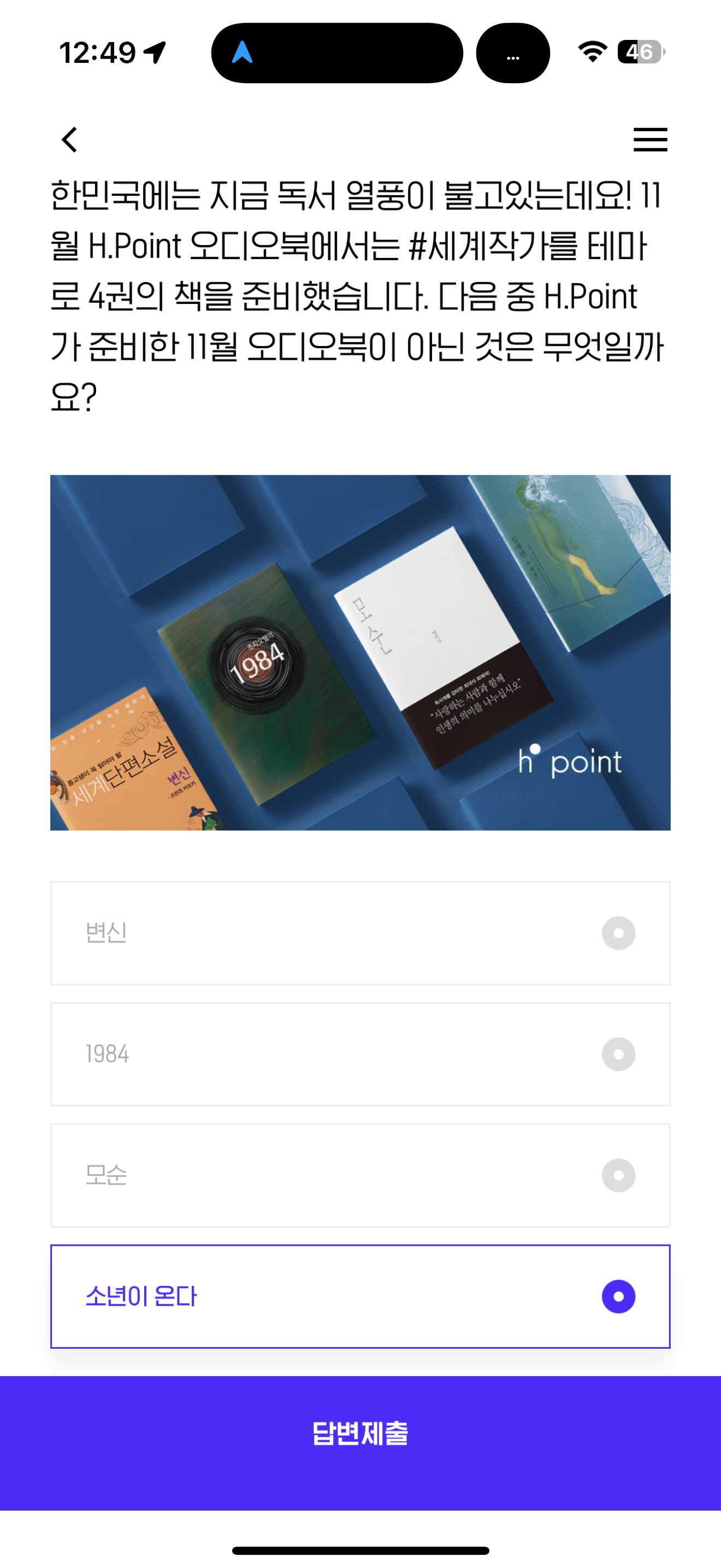 H포인트 퀴즈 정답은 소년이 온다 입니다