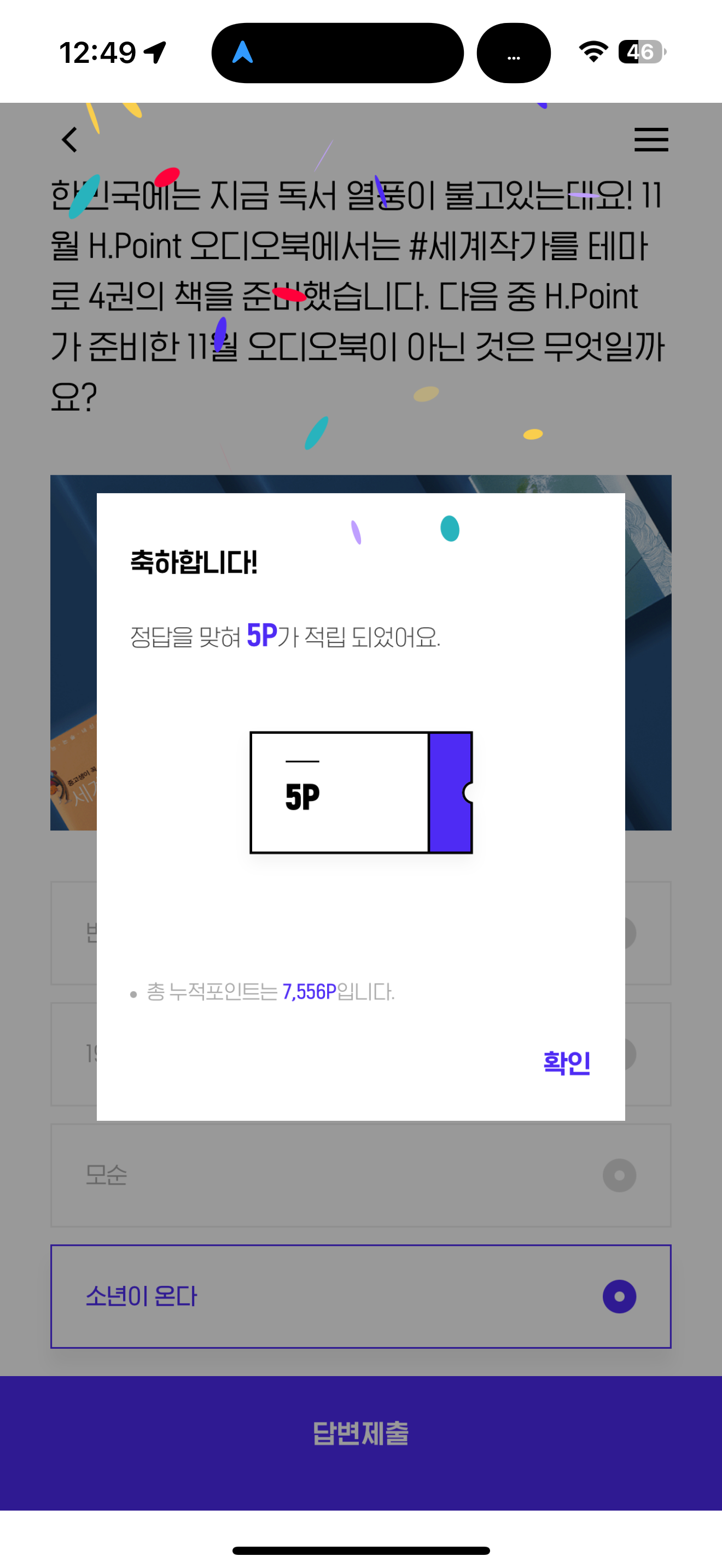H포인트 퀴즈 정답은 소년이 온다 입니다