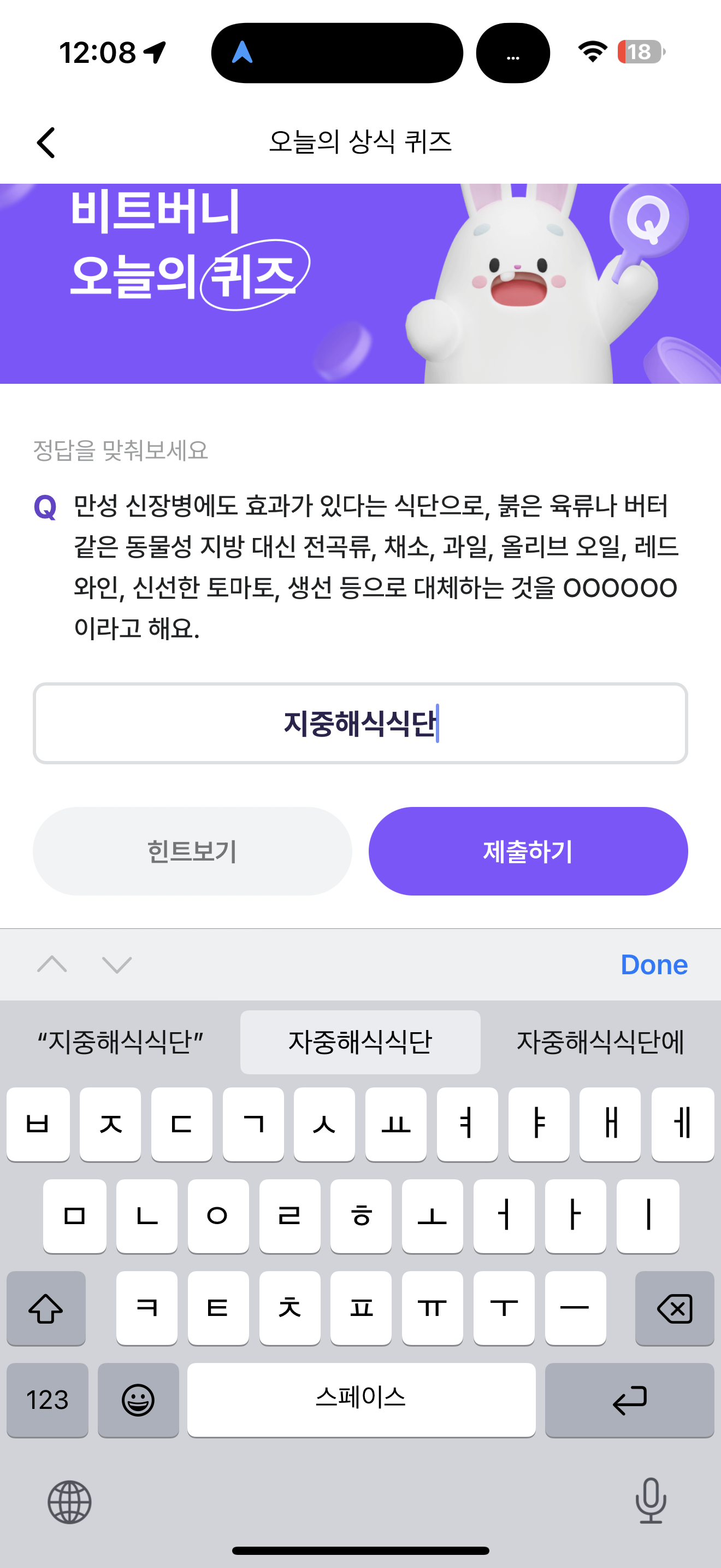 비트버니 오늘의 퀴즈 정답은 지중해식식단 입니다