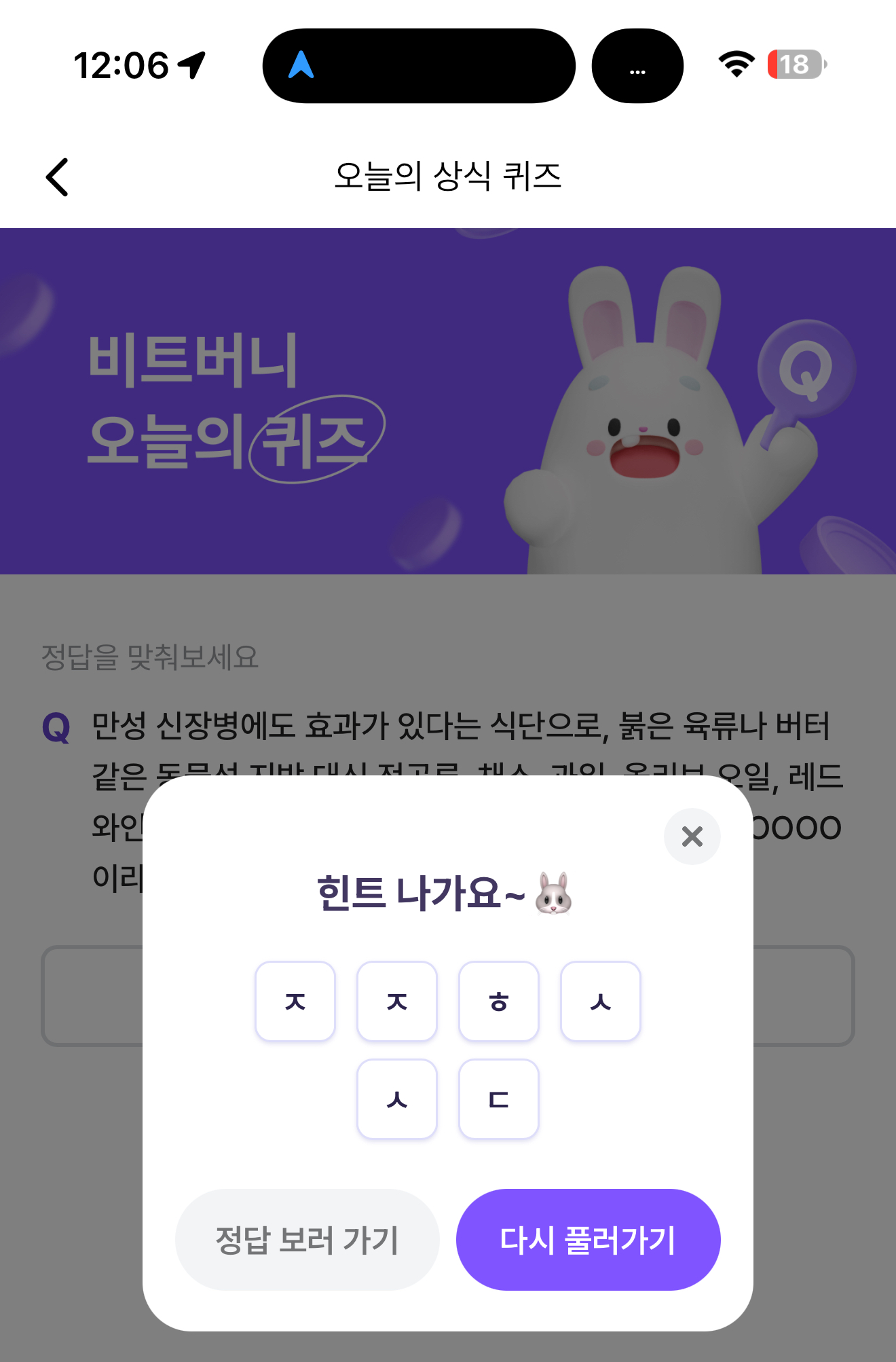 비트버니 오늘의 퀴즈 초성 힌트는 ㅈㅈㅎㅅㅅㄷ 입니다