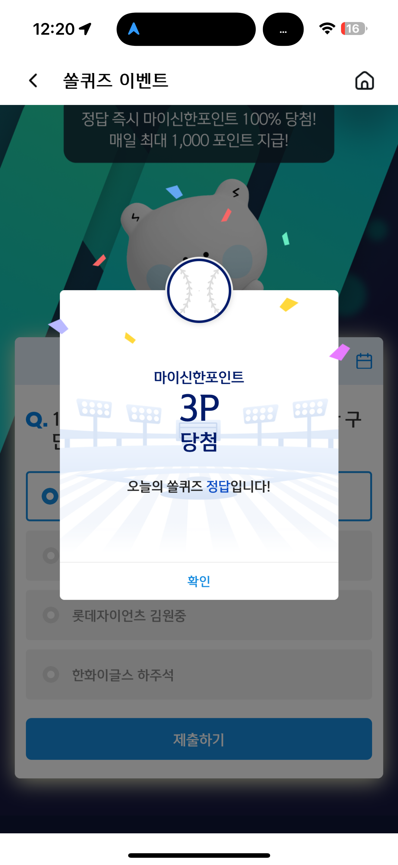 신한 슈퍼SOL 야구/상식 쏠퀴즈 11월 7일 문제입니다