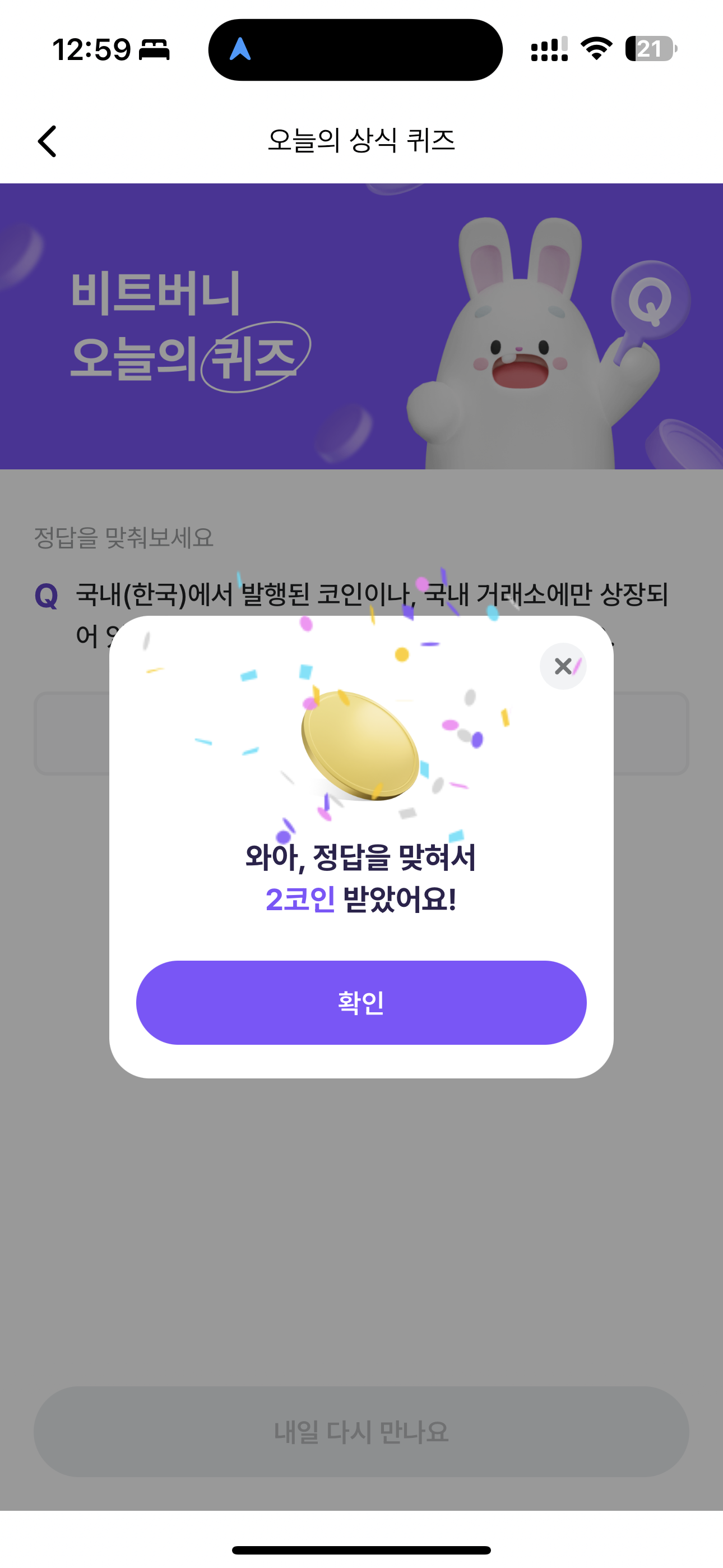 비트버니 오늘의 퀴즈 6월 9일 ㄱㅊㅋㅇ정답(국내(한국)에서 발행된 코인이나, 국내 거래소에만 상장되어 있는 코인 종목을 OOOO(이)라고 부르기도 해요)