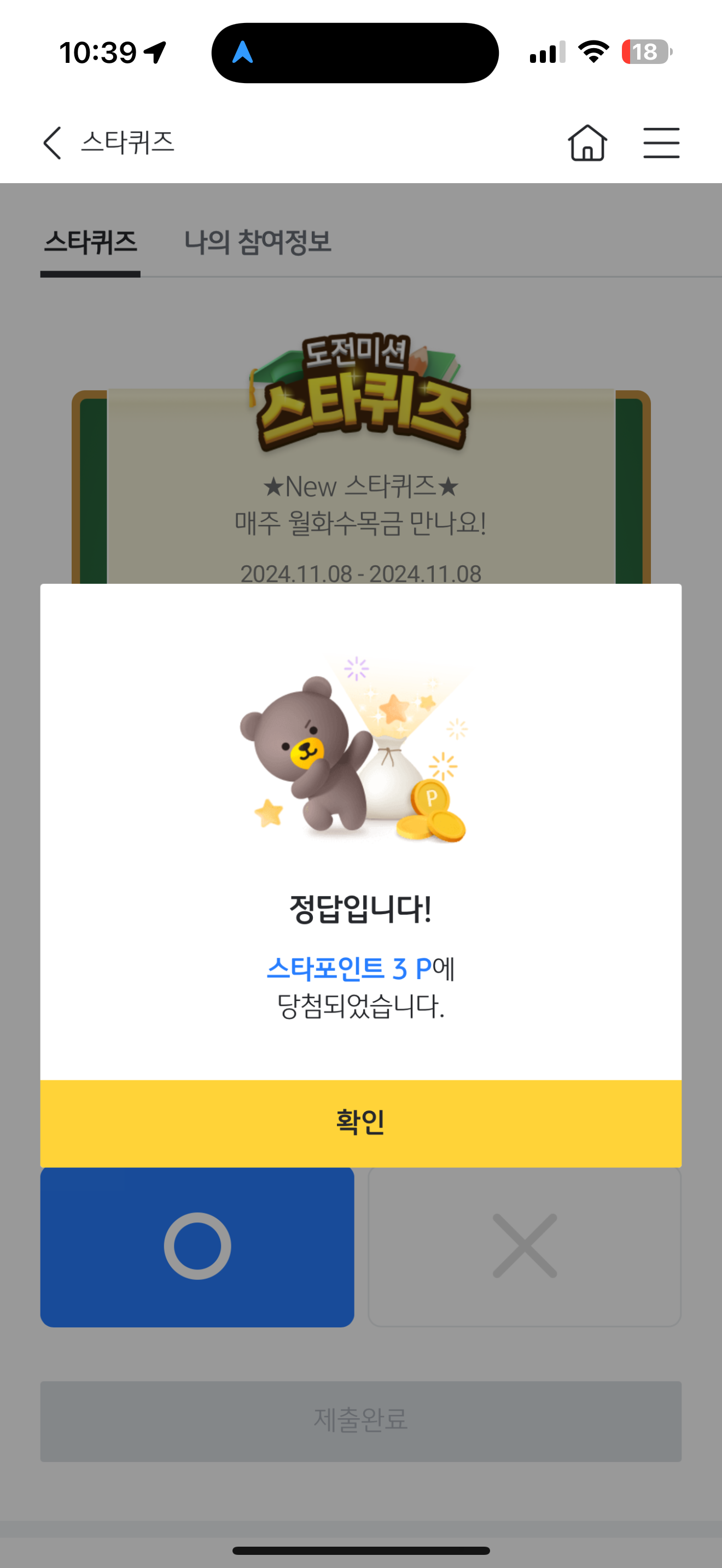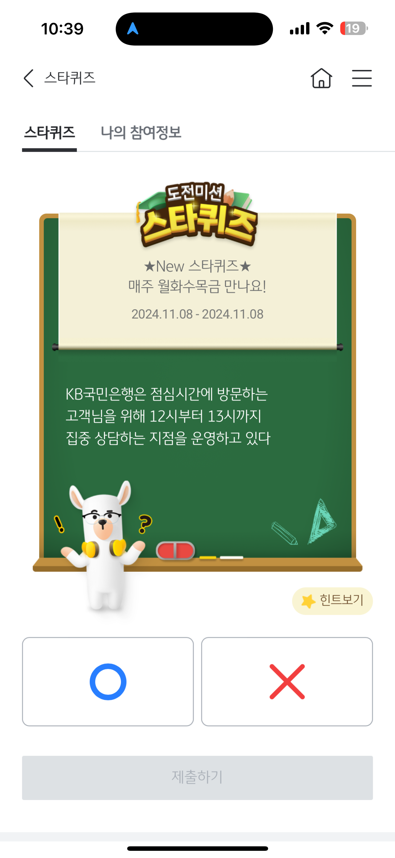 KB스타뱅킹 스타퀴즈 정답은 O 입니다
