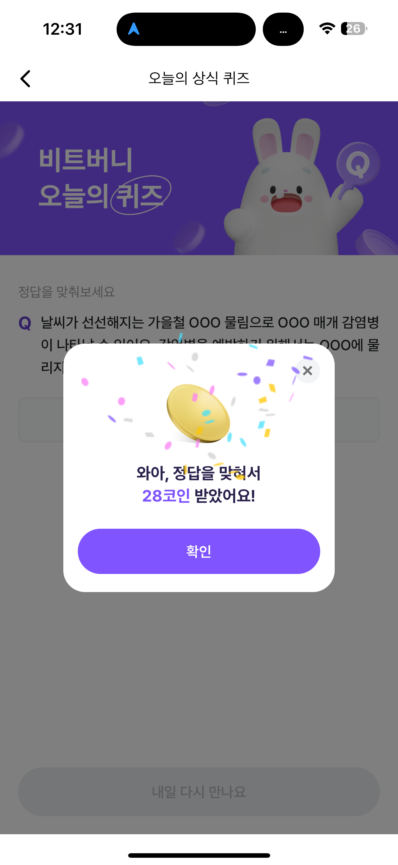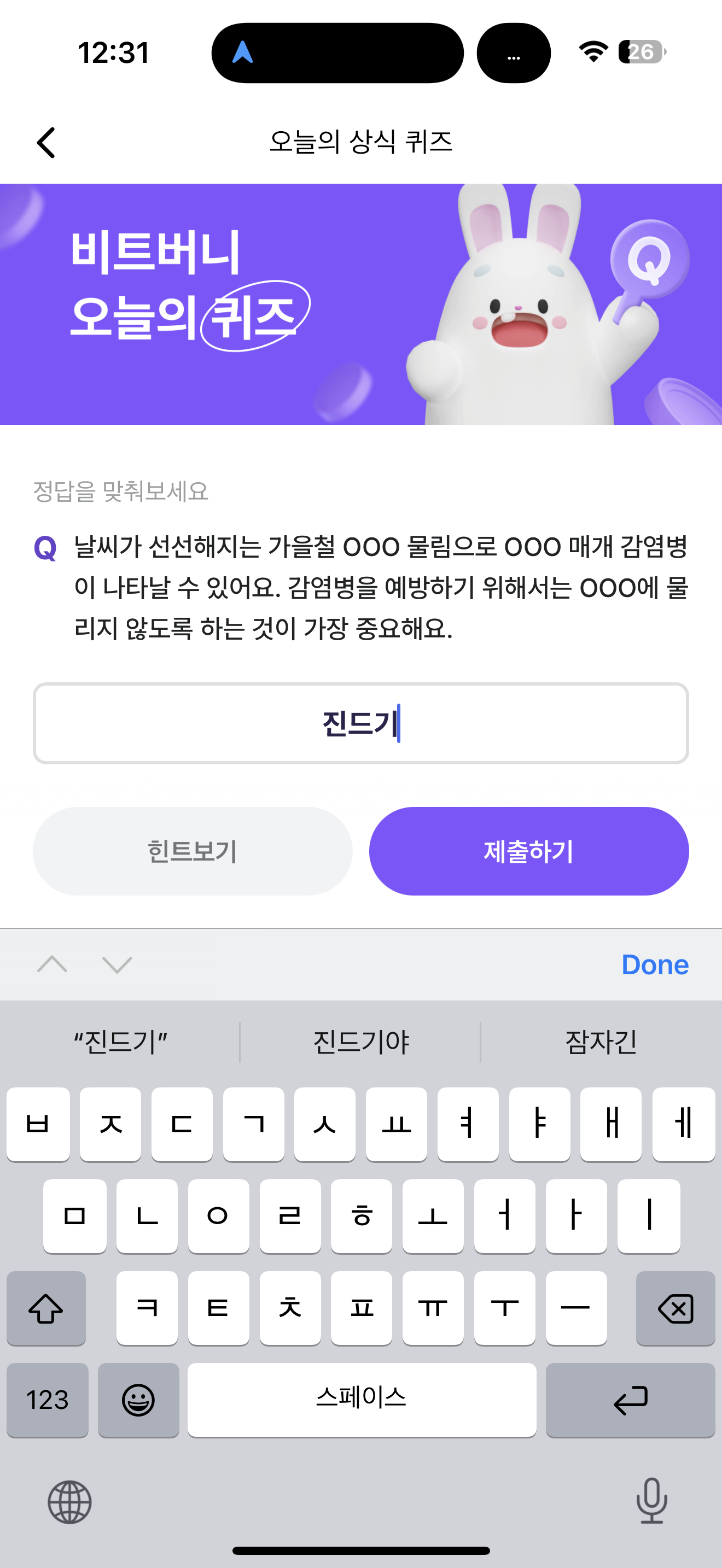 비트버니 오늘의 퀴즈 초성 힌트는 ㅈㄷㄱ 입니다