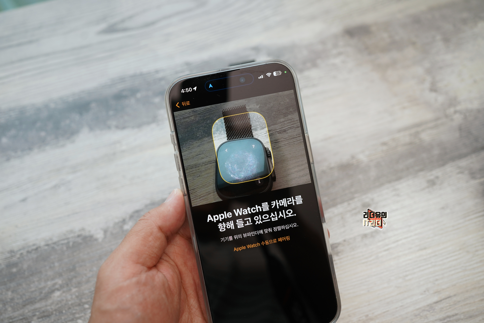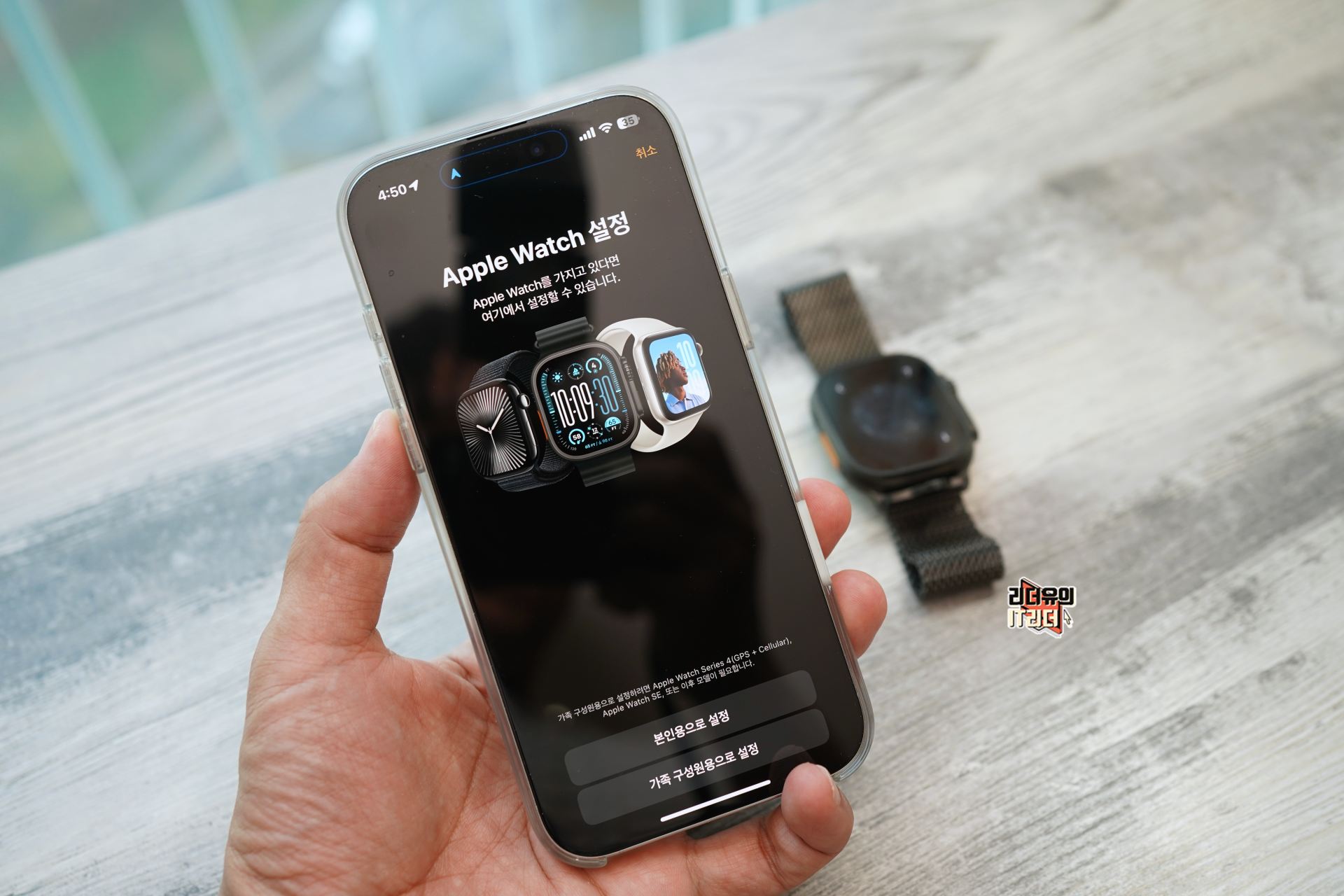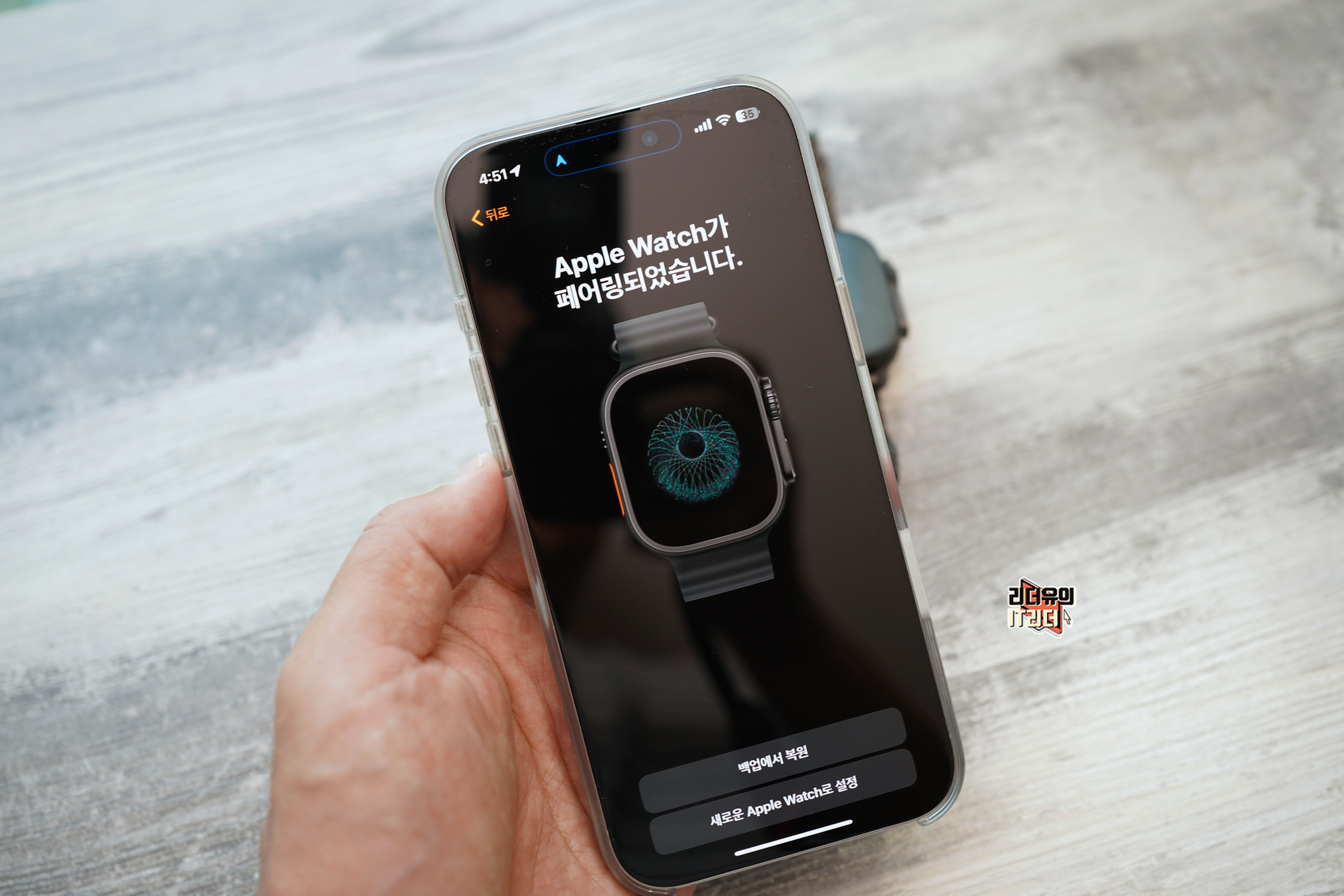 애플워치 울트라2 전원을 켜면 자동으로 아이폰에서 애플워치 울트라2를 인식해 연결할 수 있게 해줍니다.