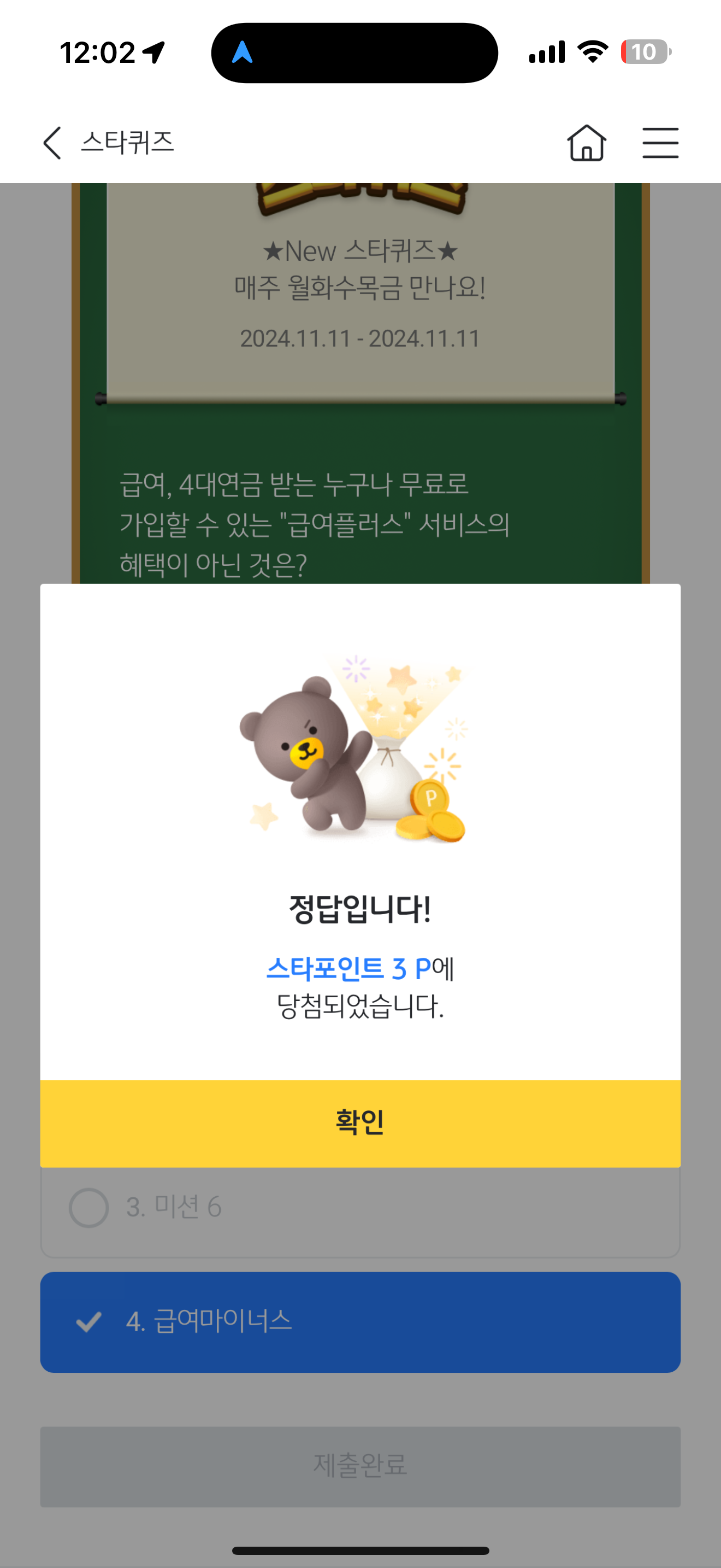 KB스타뱅킹 스타퀴즈 정답은 4. 급여마이너스 입니다