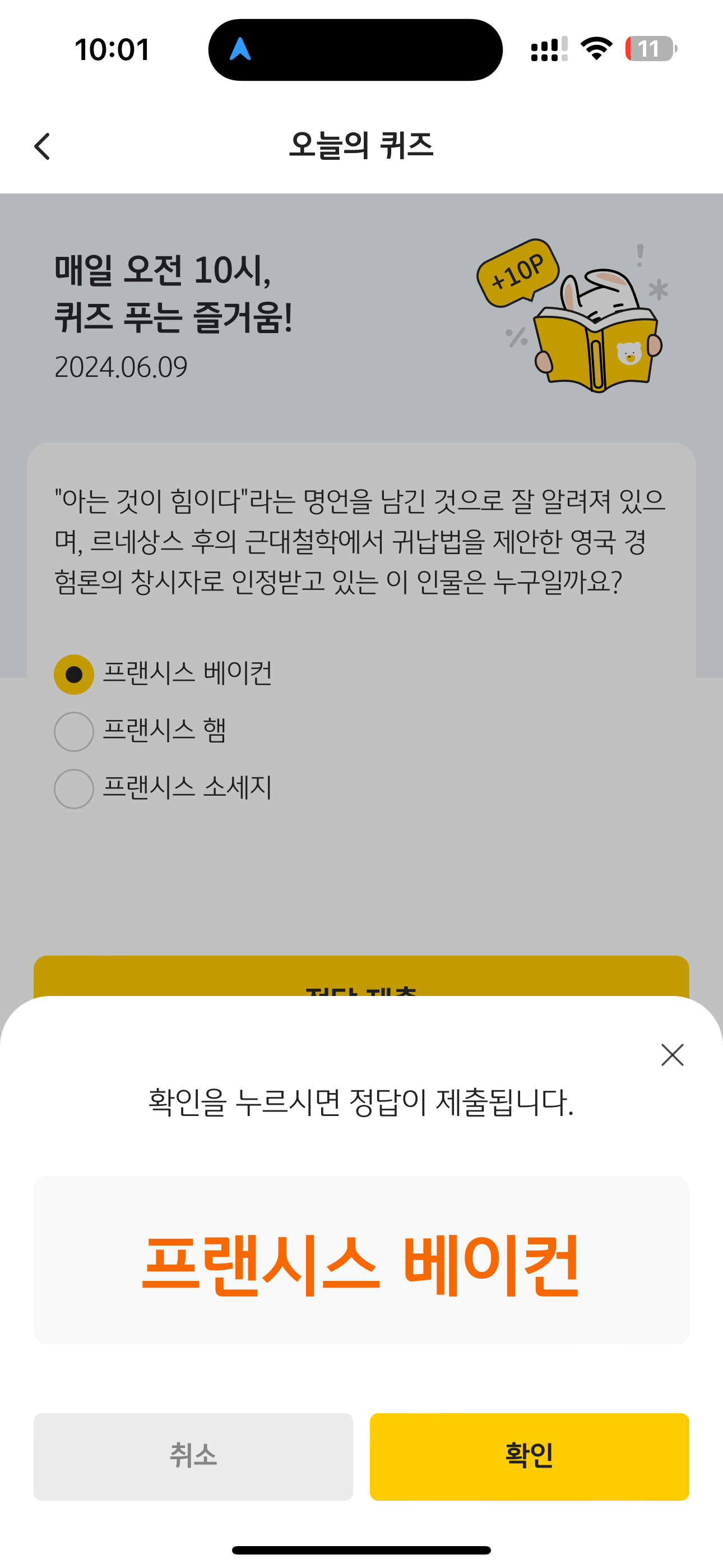 KB Pay 오늘의 퀴즈 정답은 프랜시스 베이컨 입니다