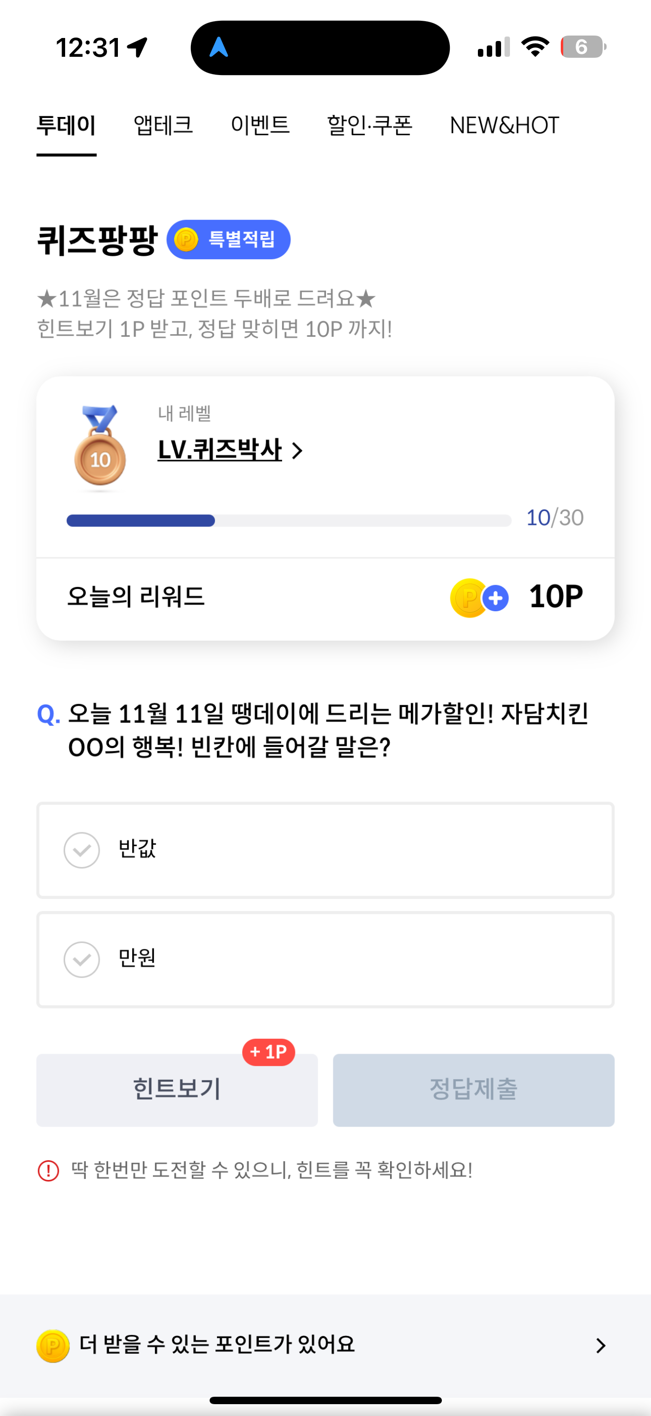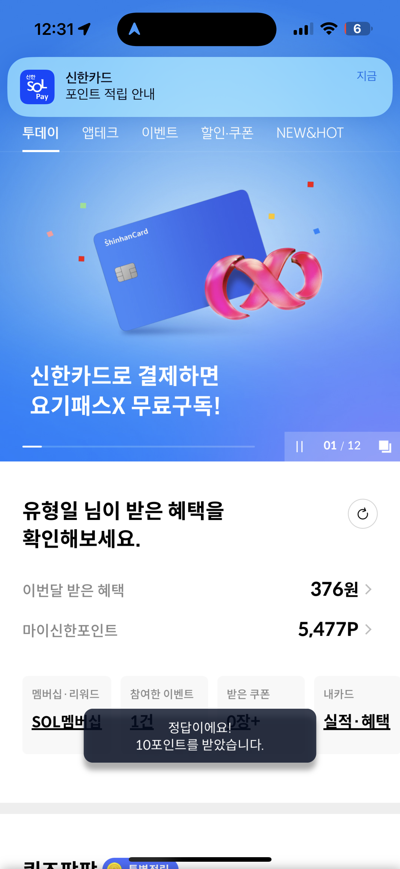 신한카드 퀴즈팡팡 정답은 만원 입니다