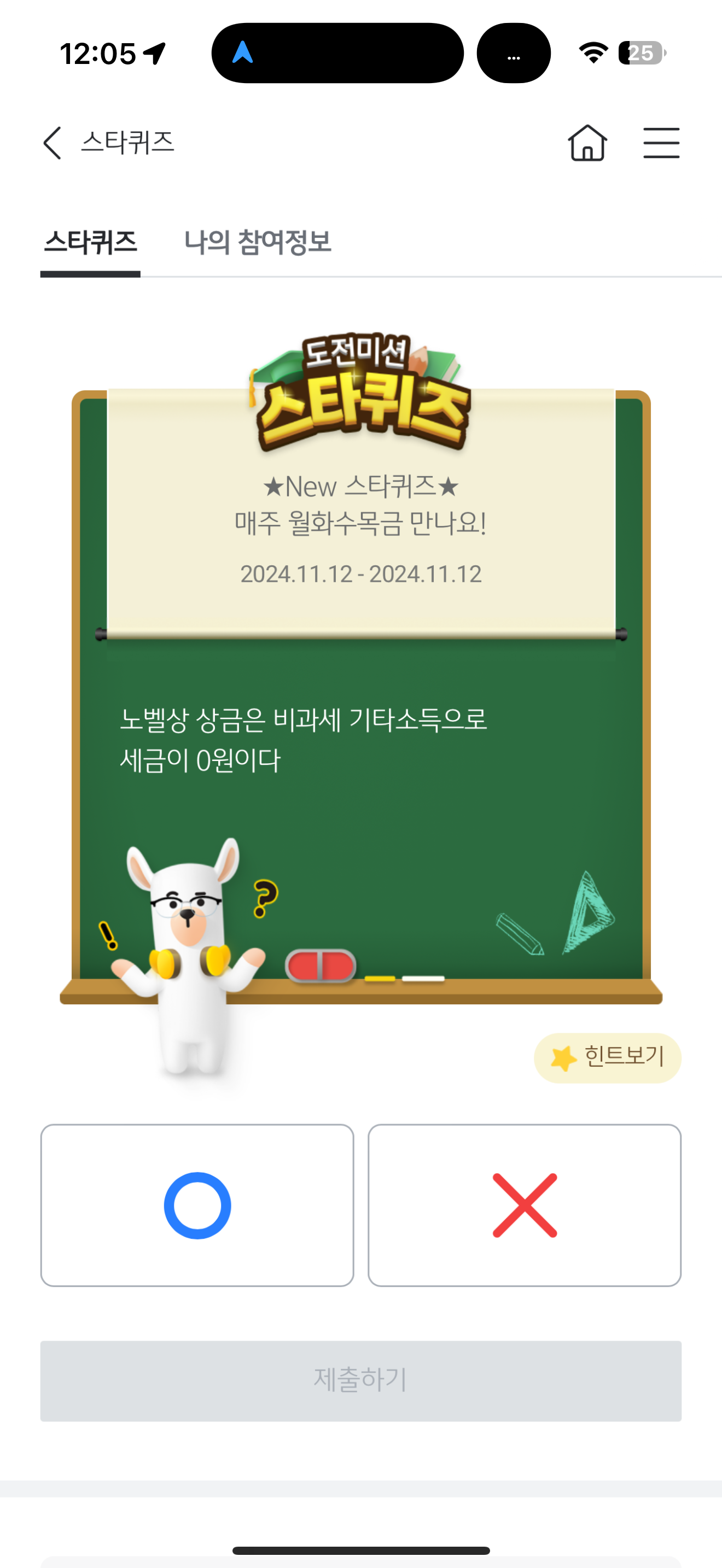 KB스타뱅킹 스타퀴즈 정답은 O 입니다