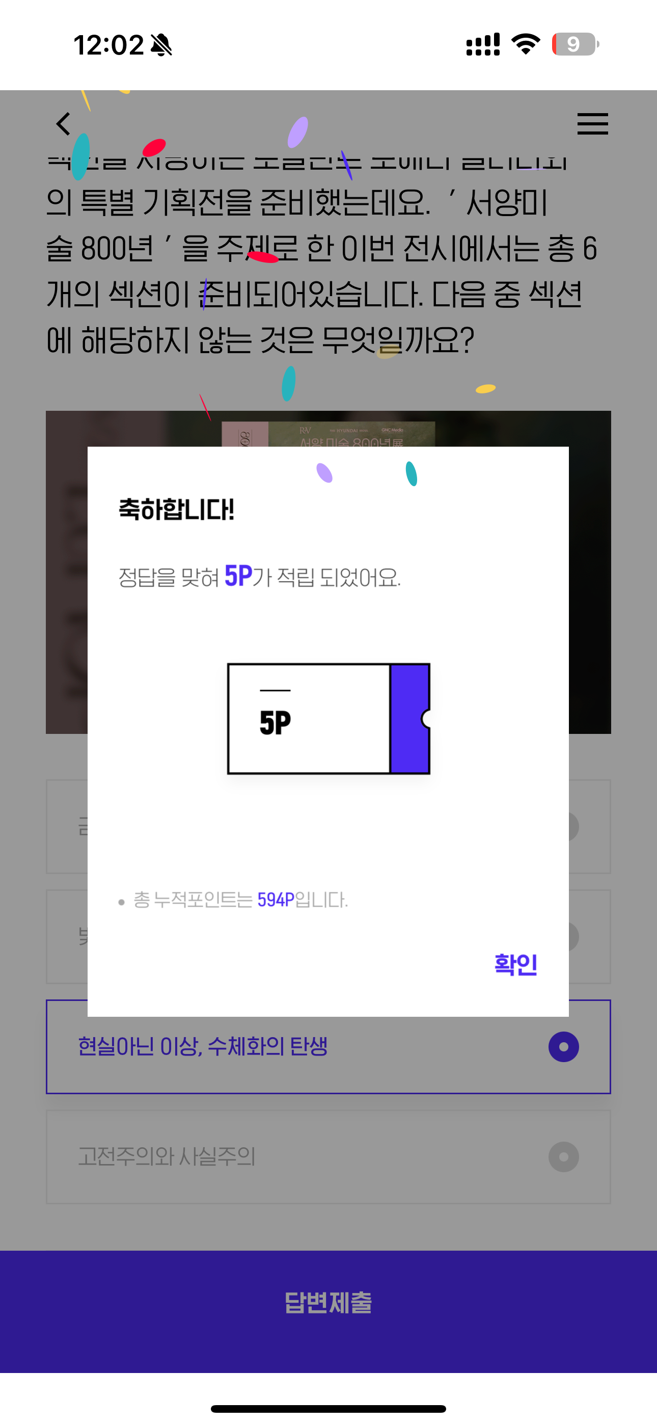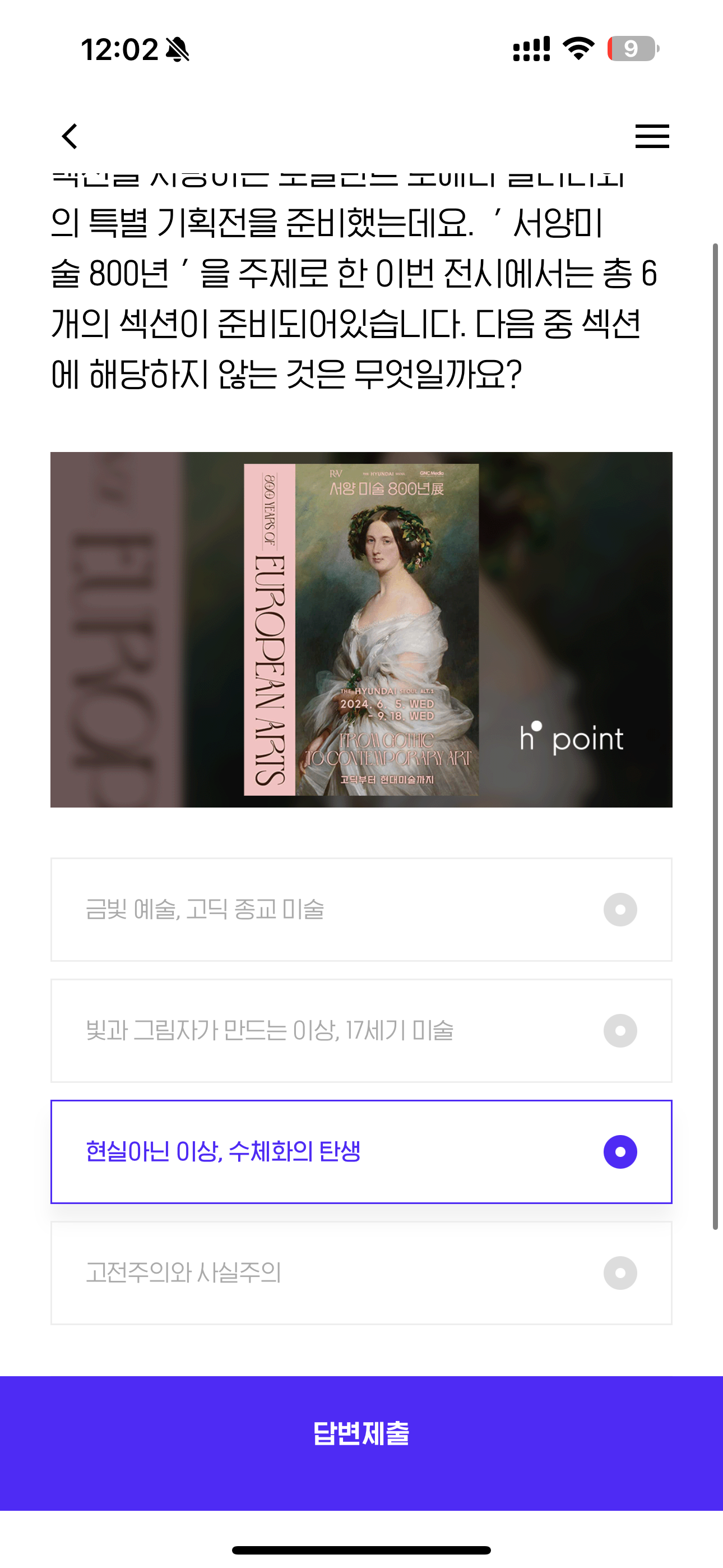 H포인트 퀴즈 정답은 현실아닌 이상, 수체화의 탄생 입니다