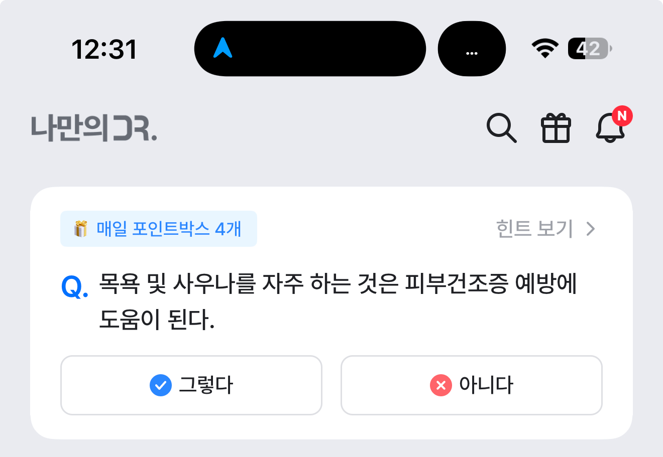 목욕 및 사우나를 자주 하는 것은 피부건조증 예방에 도움이 된다. 그렇다. 아니다 선택하면 되는데요. 목욕 및 사우나를 자주하면 피부가 어떻게 될까요? 수분을 많이 이용하니 피부가 촉촉해질까요? 아니면 피부의 유분끼를 빼서 피부가 건조해 질까요? 피부건조증으로 고통 받는 분들은 참고해 두세요