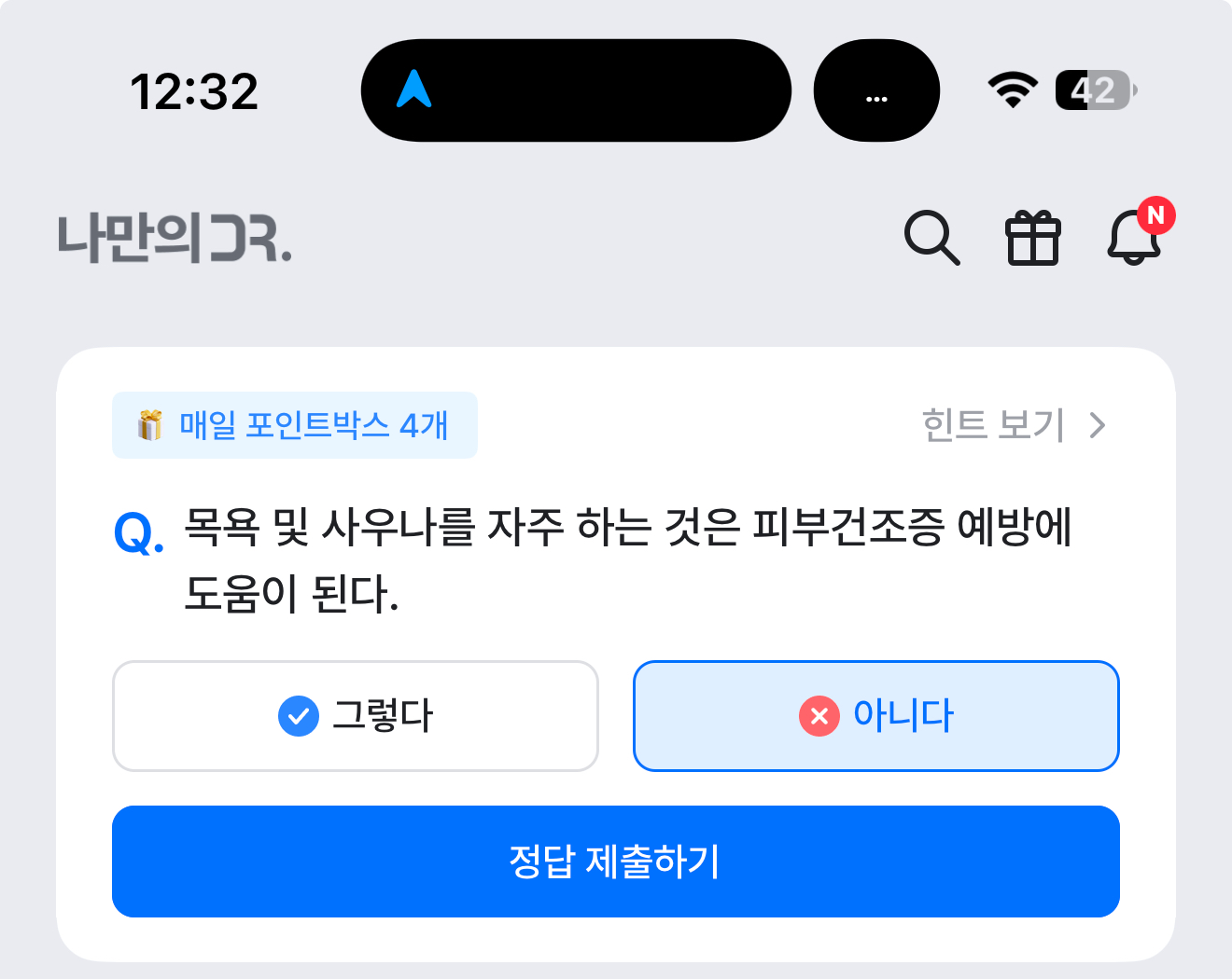 나만의 닥터 퀴즈 정답은 아니다 입니다.