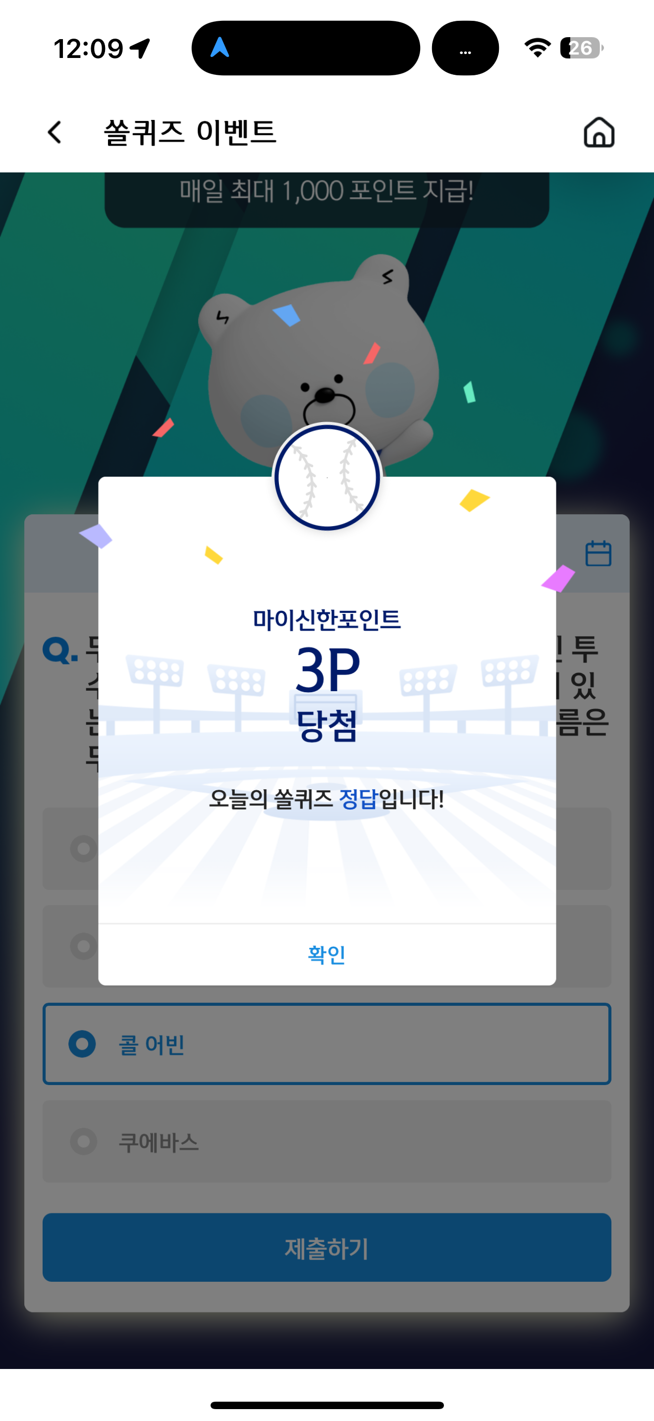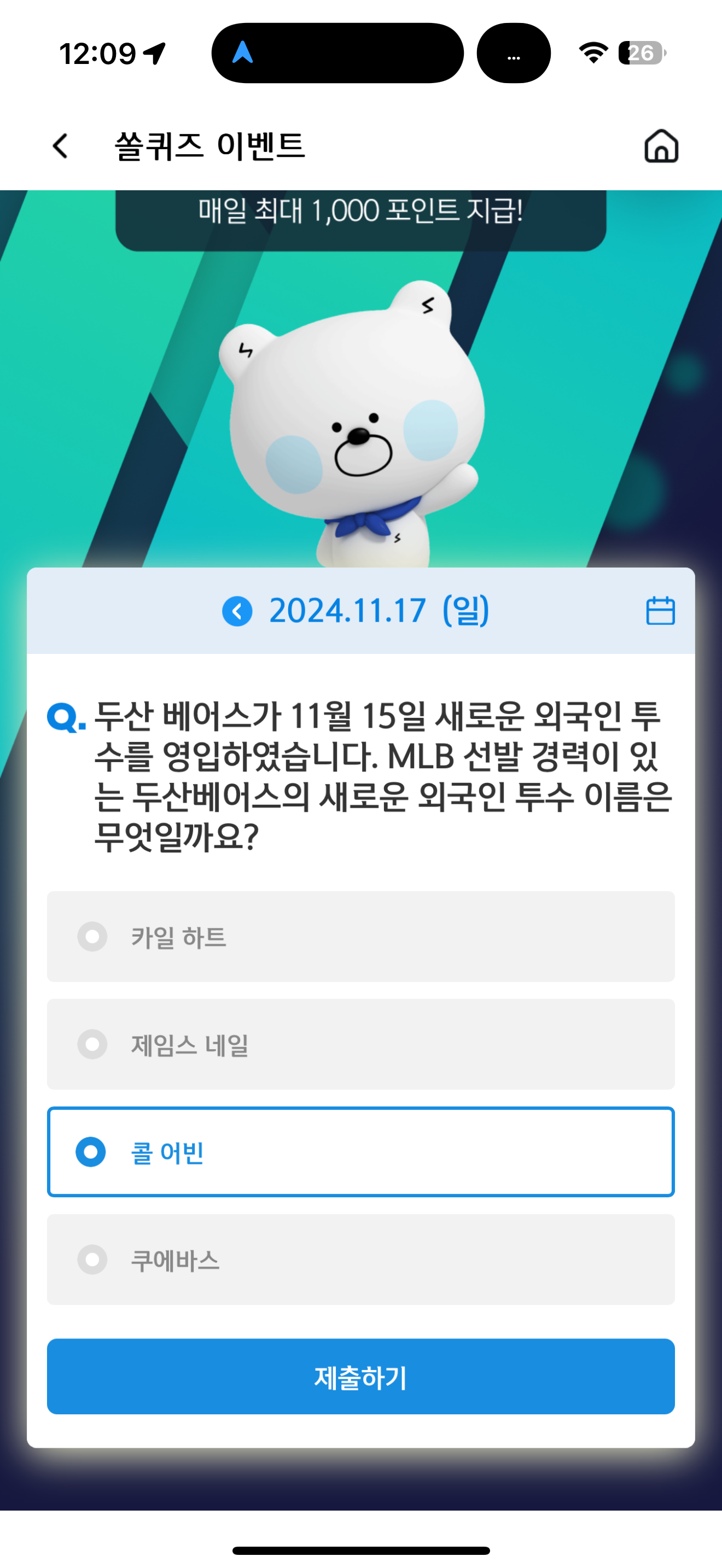 신한 슈퍼SOL 야구/상식 쏠퀴즈 11월 17일 문제입니다