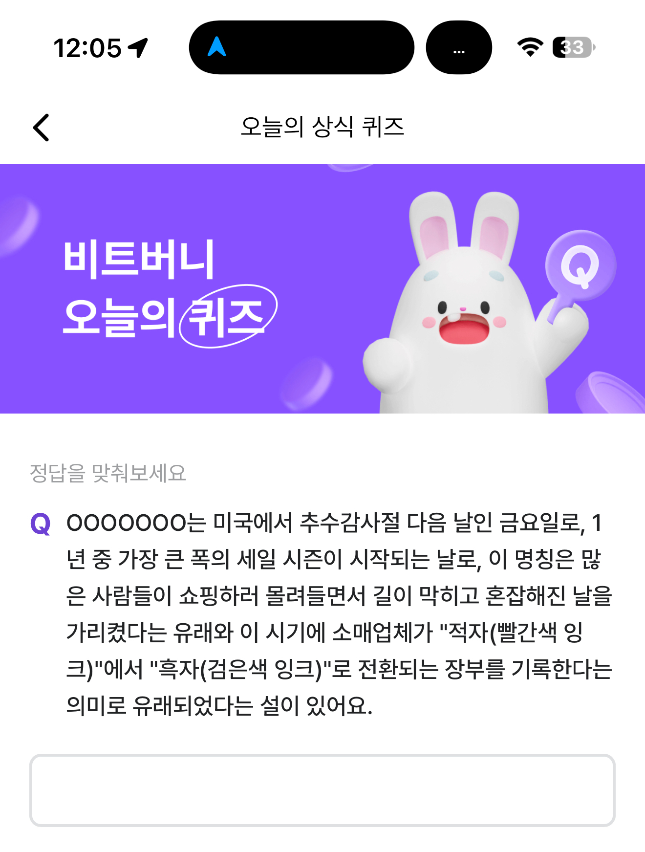 비트버니 오늘의 퀴즈 정답은 블랙프라이데이 입니다