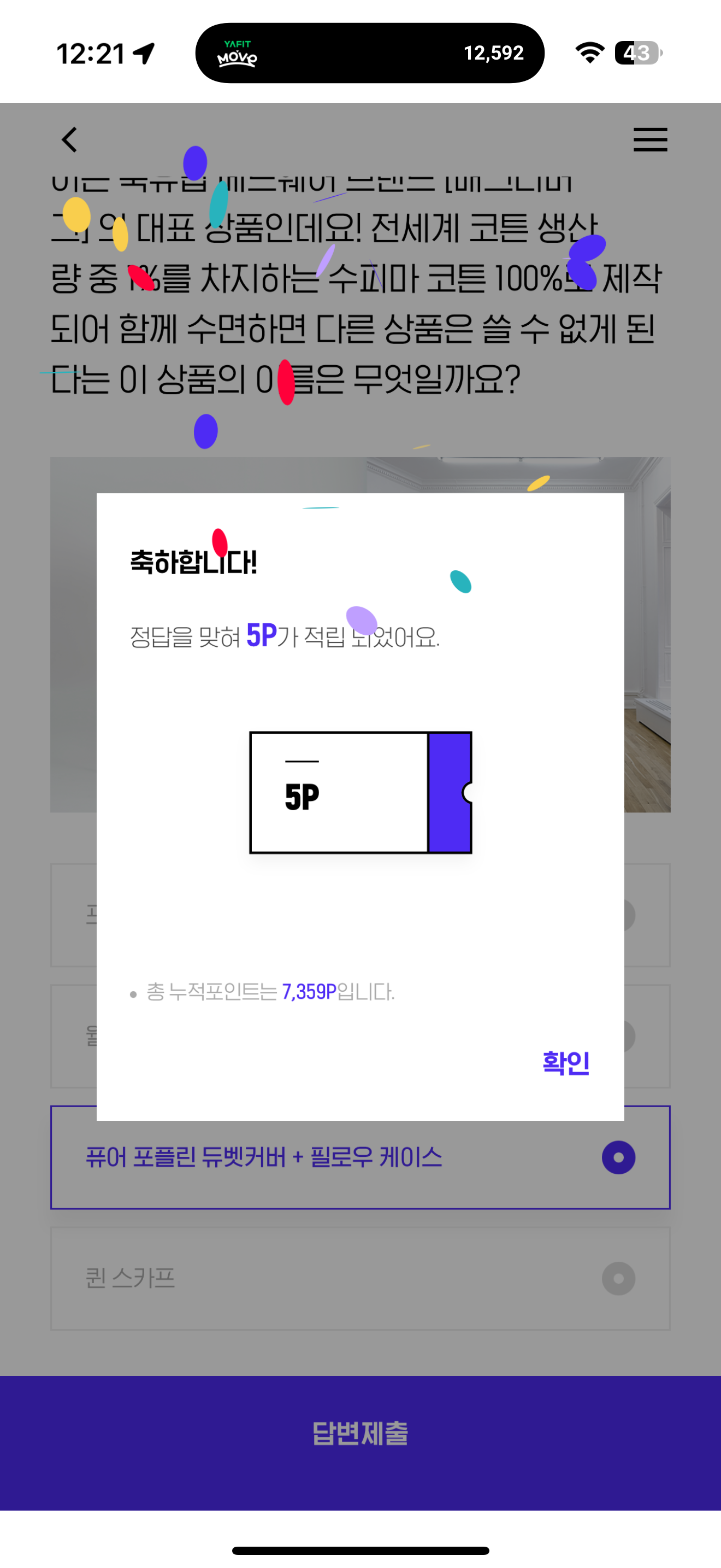 H포인트 퀴즈 정답은 퓨어 포플린 듀벳커버 + 필로우 케이스 입니다