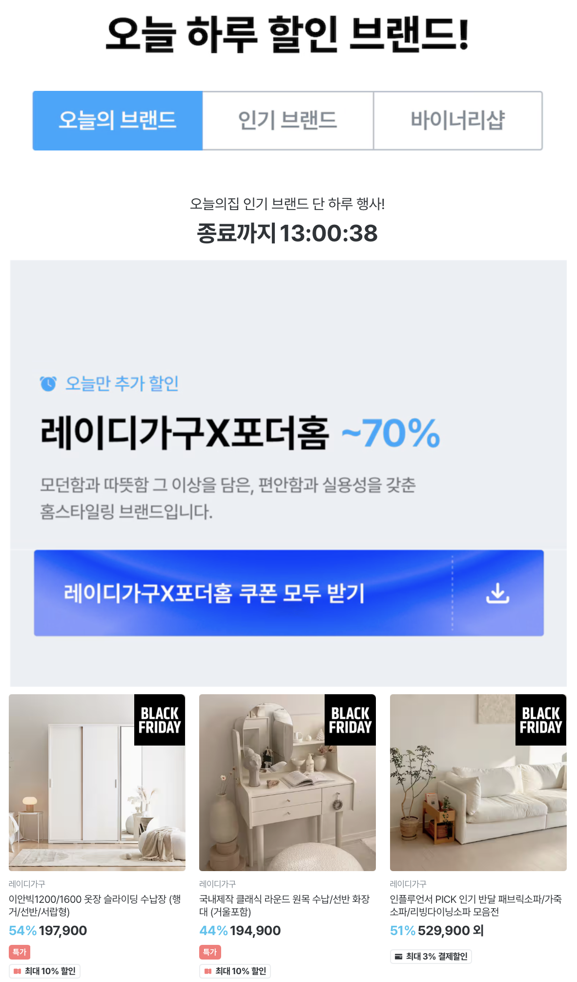오늘의 집 블랙프라이데이 오늘 하루 할인 브랜드