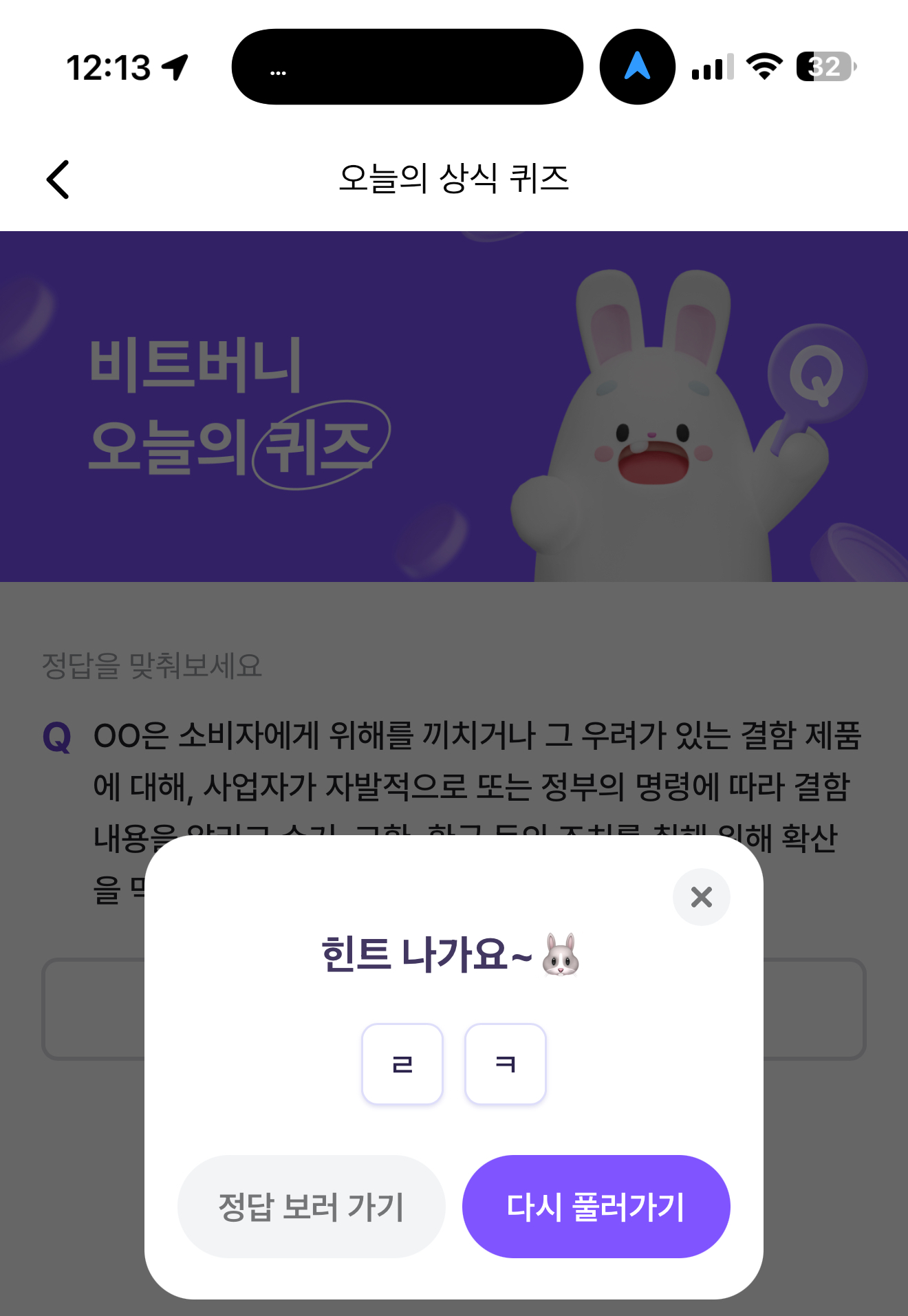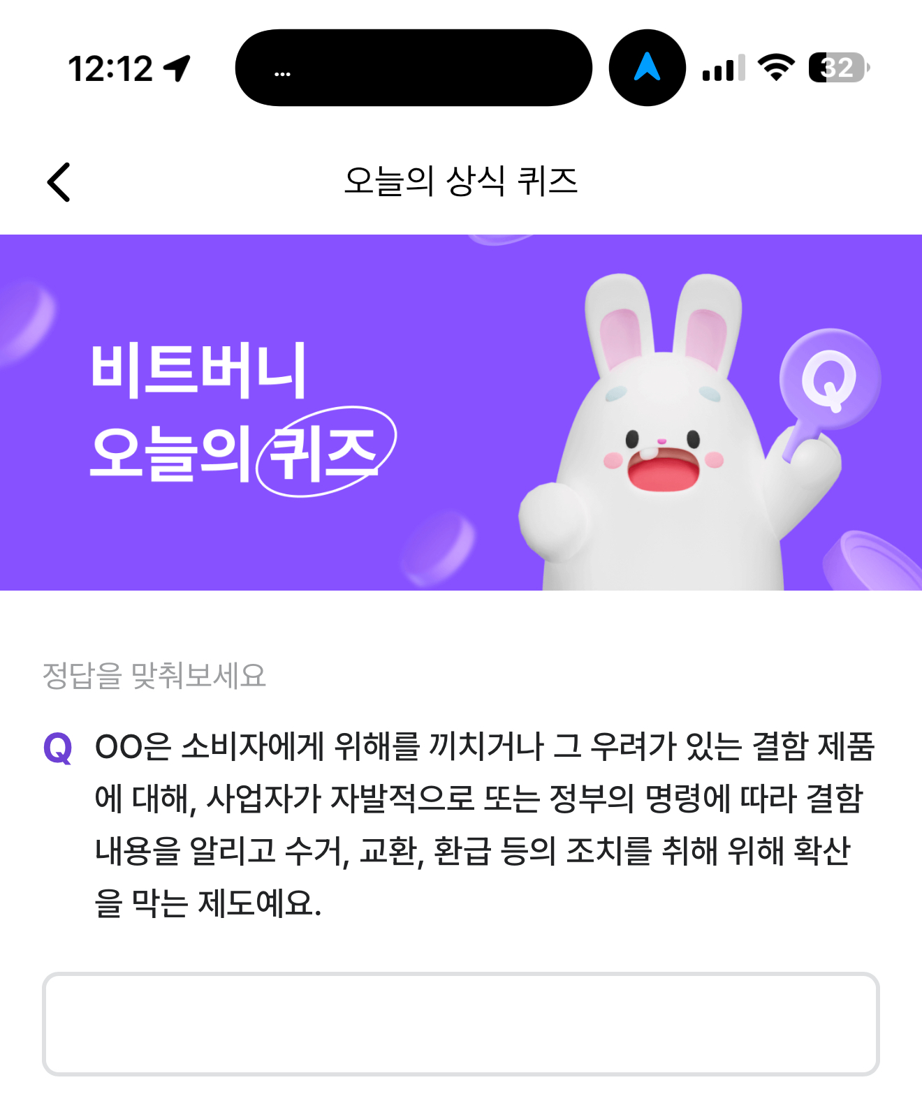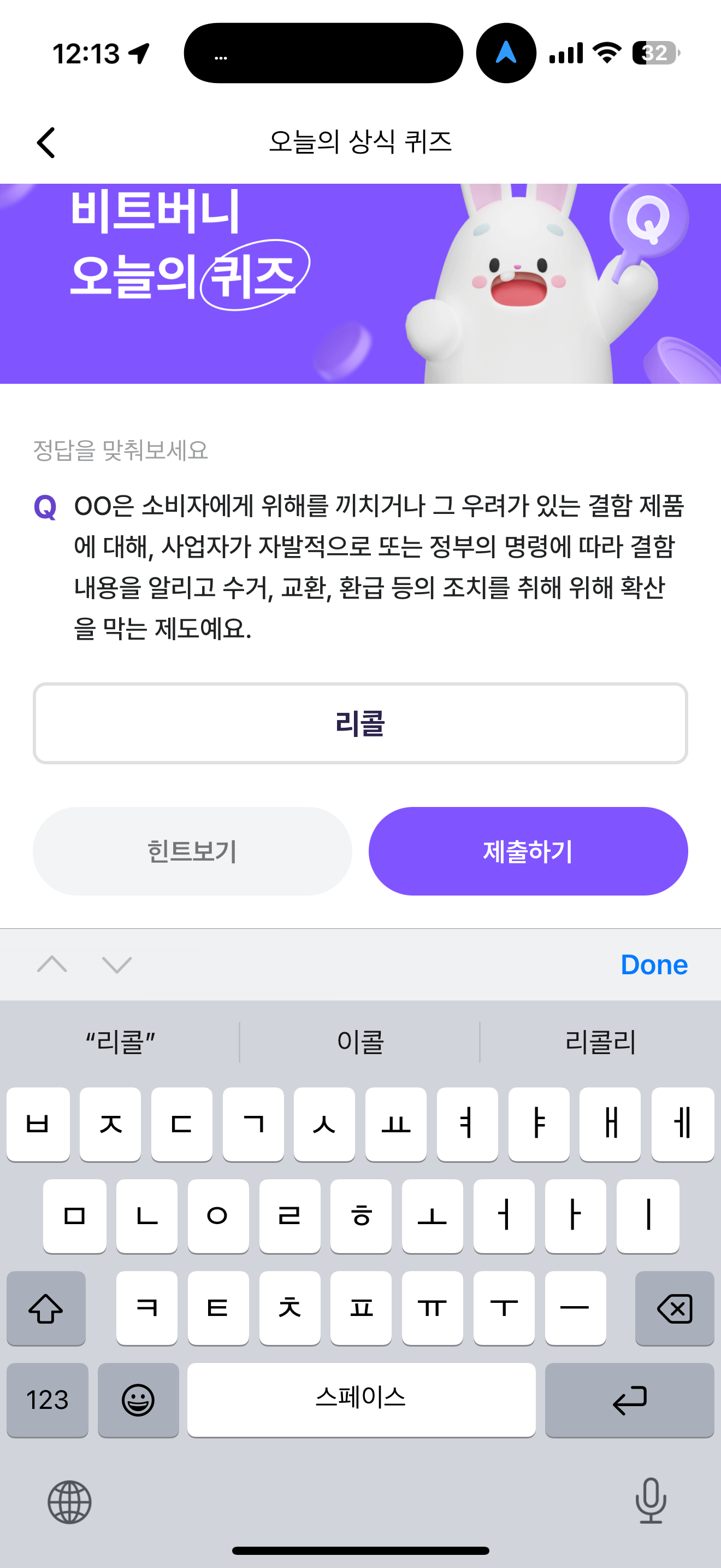 비트버니 오늘의 퀴즈 정답은 리콜 입니다