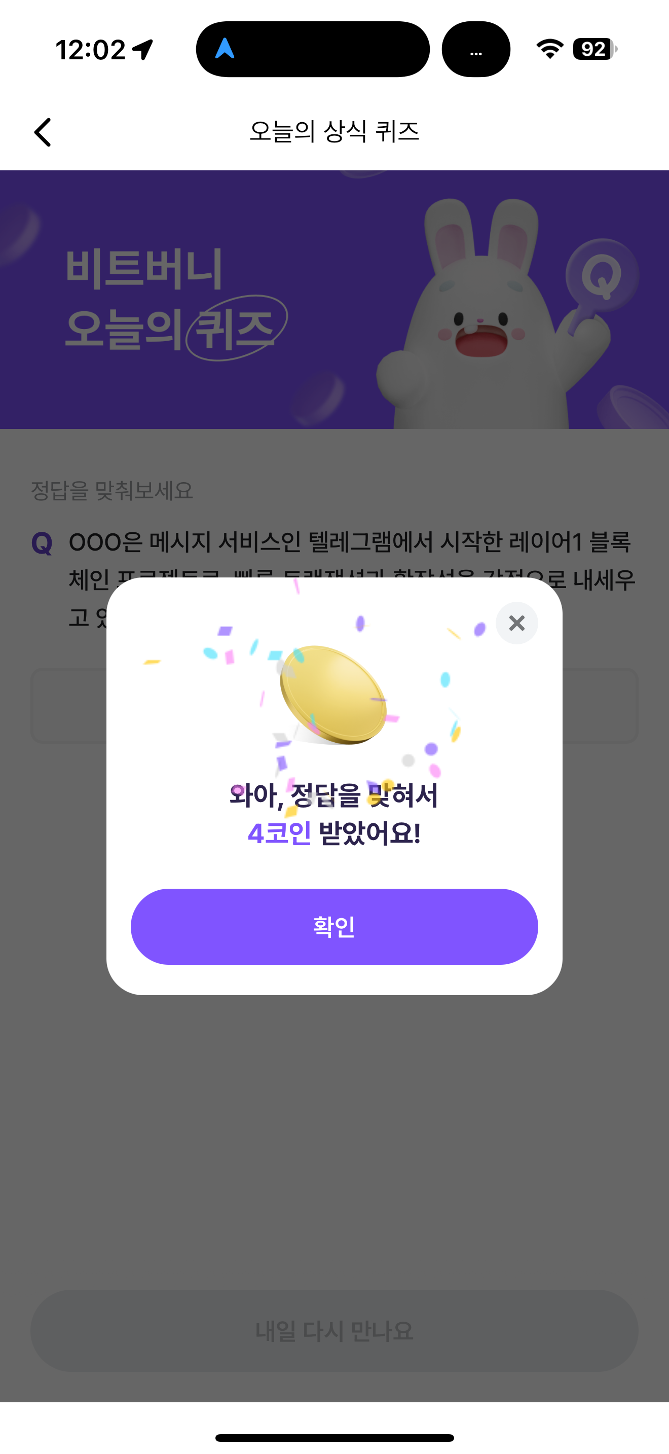 비트버니 오늘의 퀴즈 정답은 톤코인 입니다