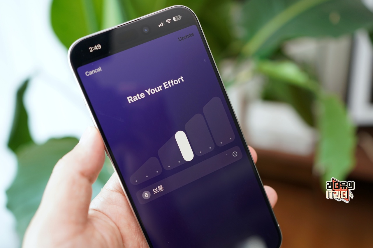 새로운 운동 강도 점수는 운동이 끝난 뒤, 얼마나 힘들었는지 1부터 10까지 점수로 기록해 강도를 측정하게 됩니다. 유산소 운동 시 혁신적인 새로운 알고리즘이 자동으로 운동 강도 추정치를 산출하게 됩니다. 나이, 키, 몸무게 같은 데이터와 GPS, 심박수, 고도 등의 운동 데이터를 활용하게 됩니다. 이 측정값은 스트레스나 통증과 같은 기타 요소를 고려해 사용자가 직접 조절도 할 수 있게 지원합니다. 그리고 근력 강화 운동과 같이 자동 측정값이 제공되지 않는 운동의 경우는 운동을 마친 뒤 사용자가 직접 운동 점수를 입력할 수 있습니다.