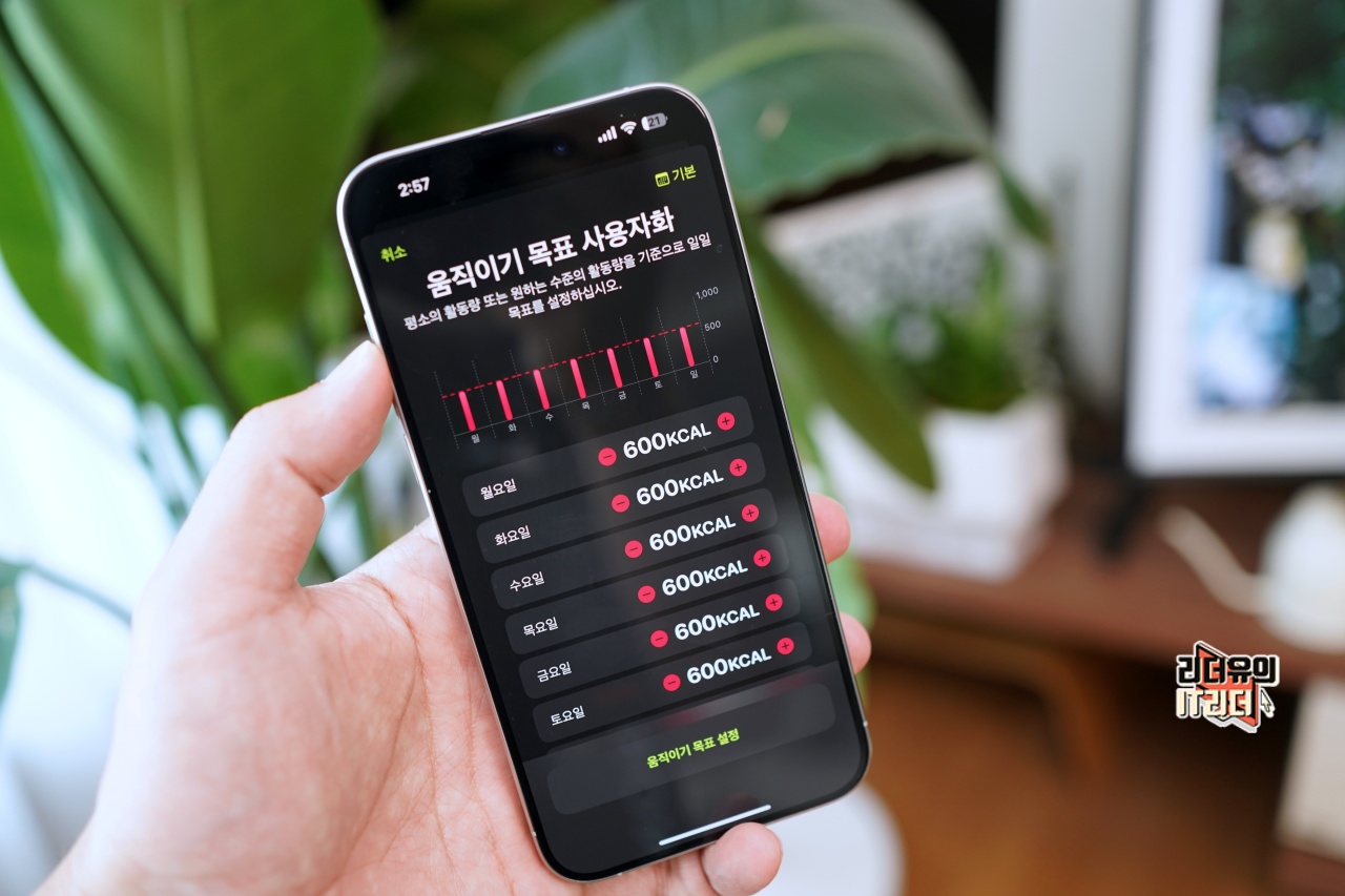그리고 요일별로 활동 링 목표를 사용자화 할 수 있습니다. 좀 더 세밀하게 목표를 조절할 수 있는 변화입니다.